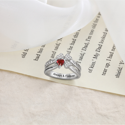 Personalized Ring With 1 Birthstone Engraved Names Ring Best Gift For Women