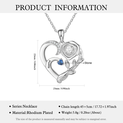 Personalized Rose Heart Necklace Custom 1 Name & Birthstone Mother Necklace