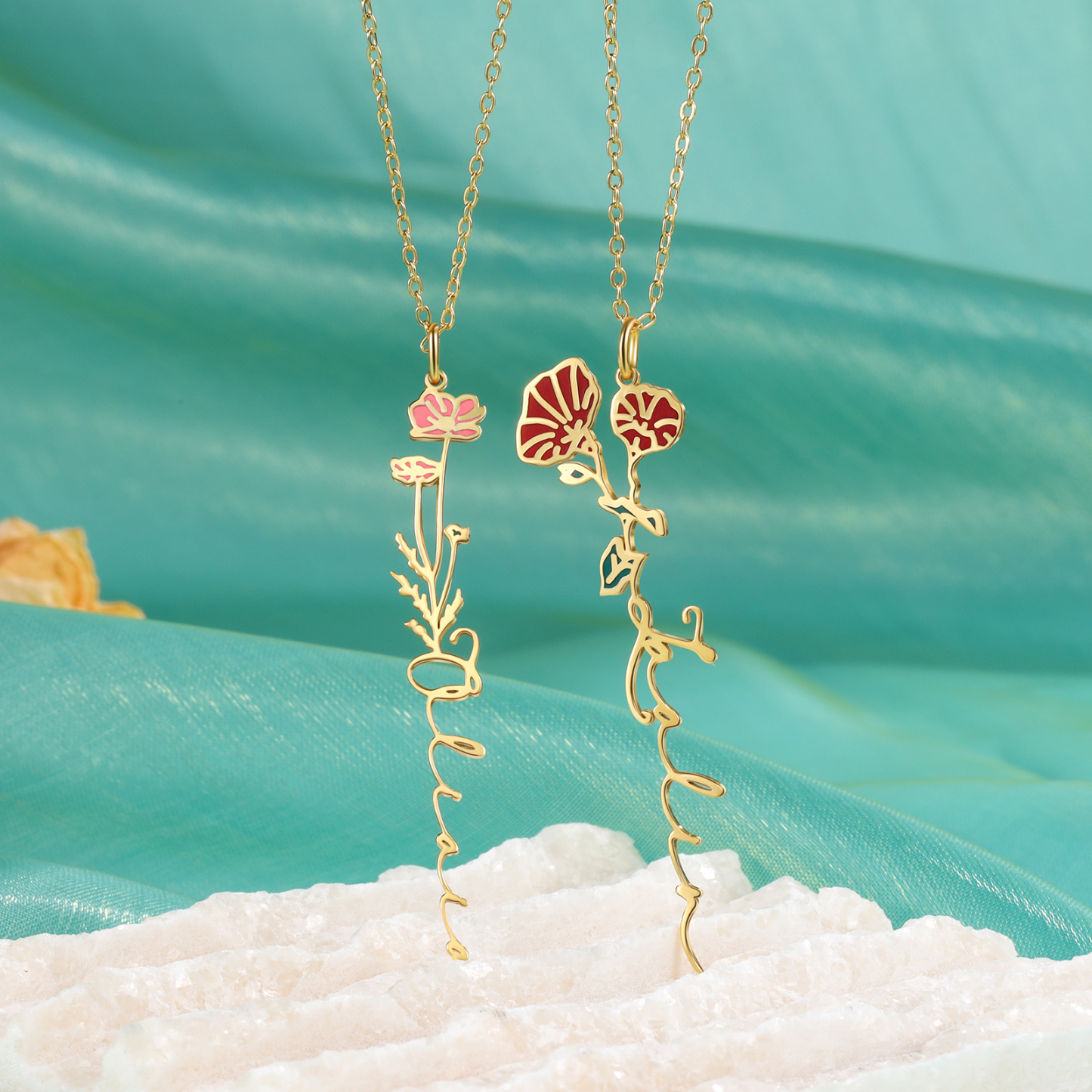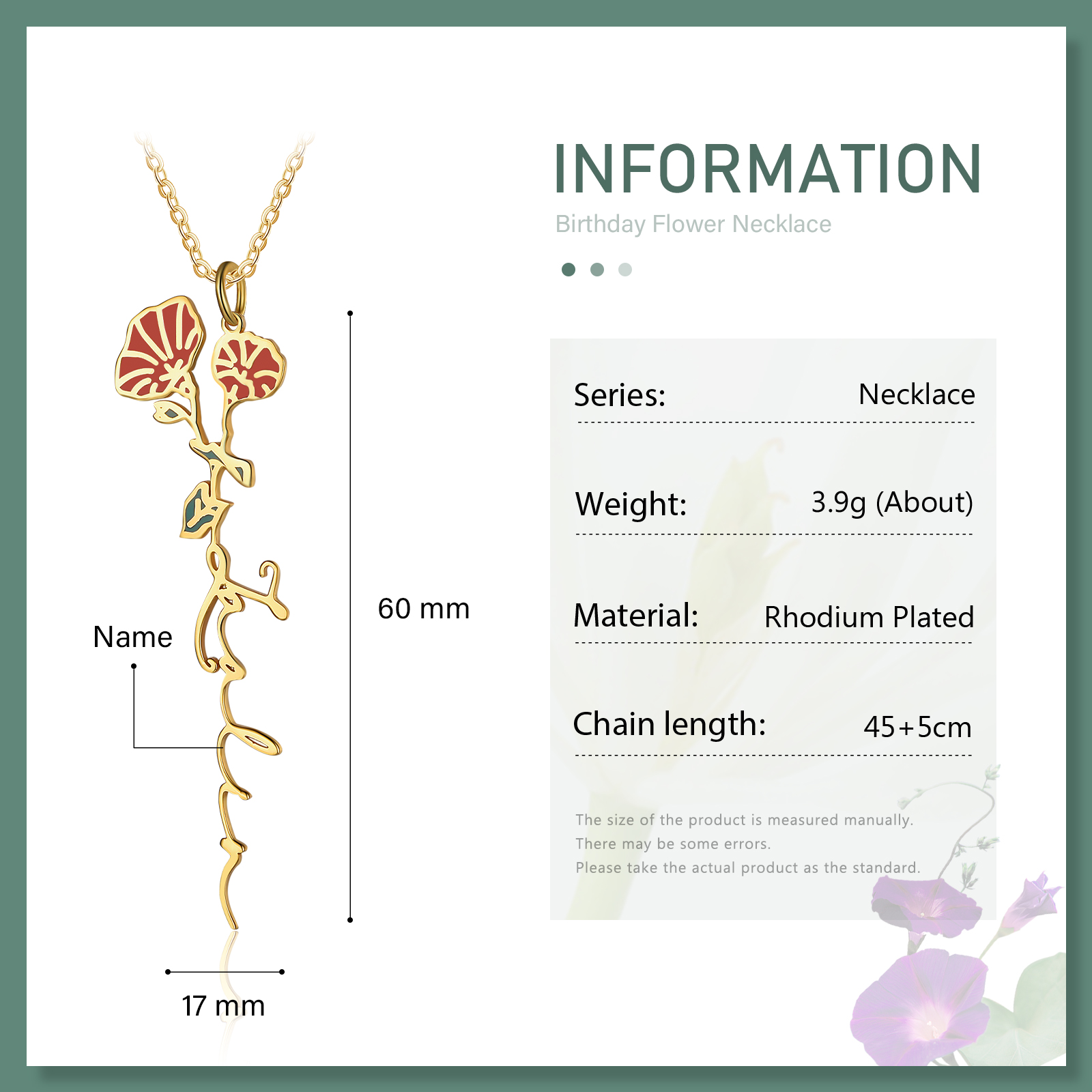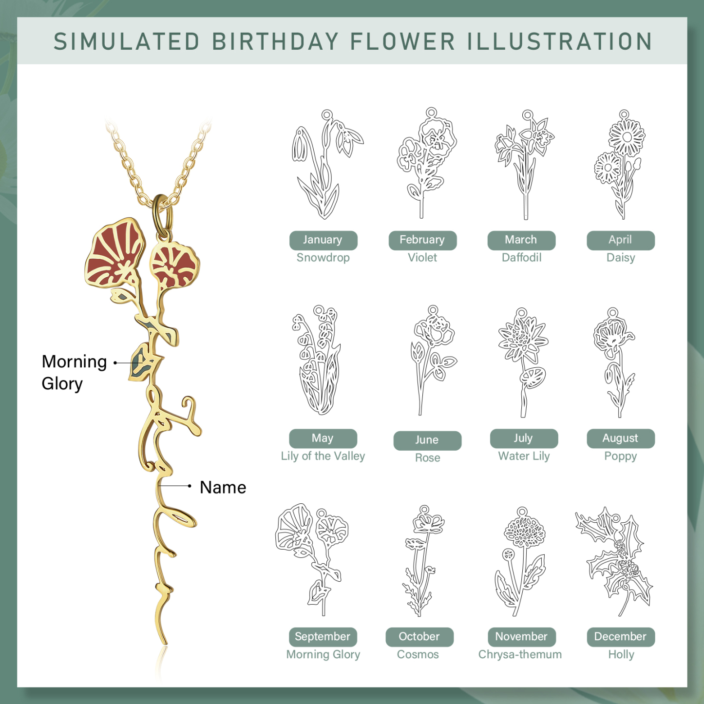 Personalized September Birth Flower Necklace Custom 1 Name Epoxy Necklace Gifts For Her
