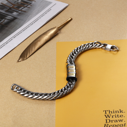 Personalized Silver Stainless Steel Bracelet Custom 3 Names Men's Women's Bracelets For Couple