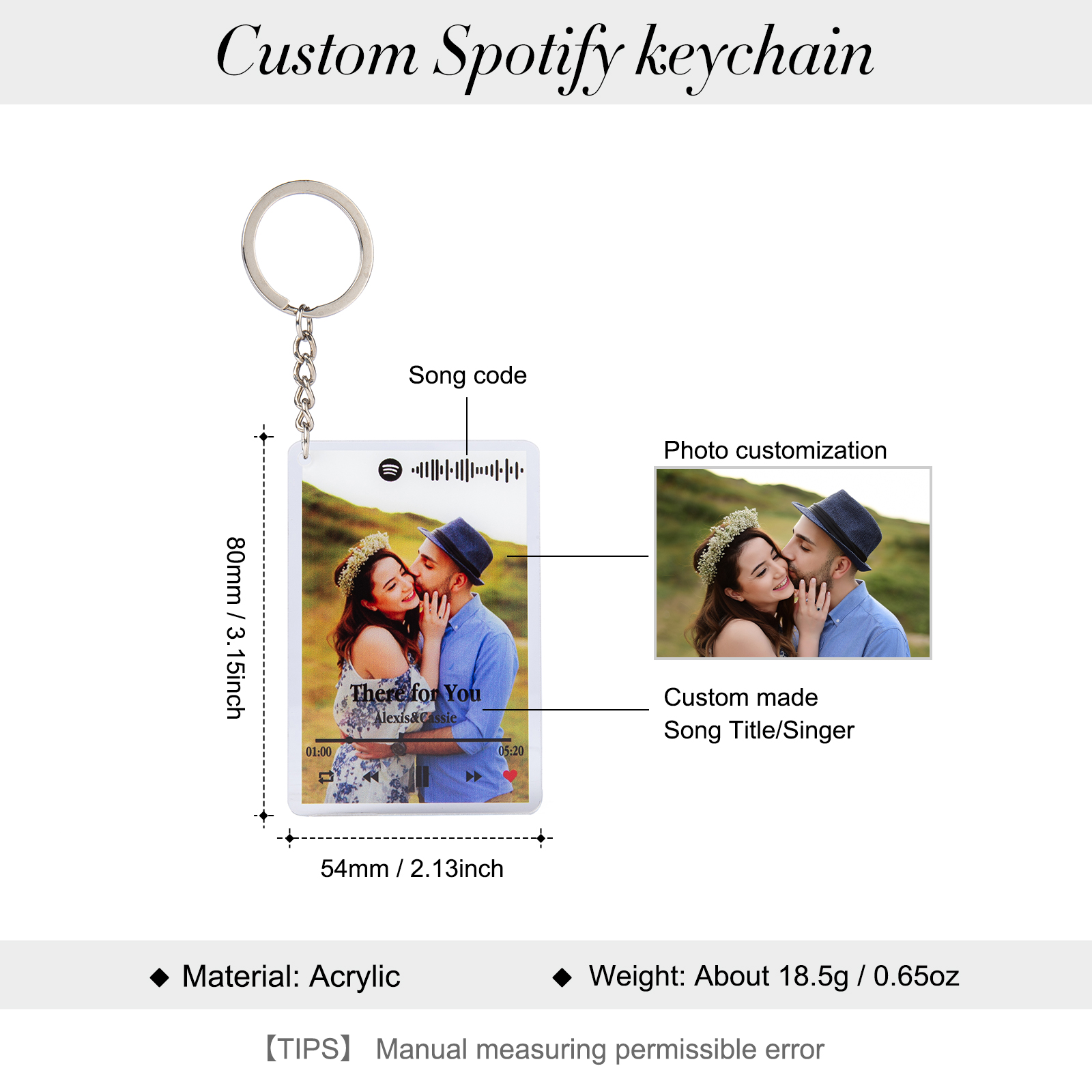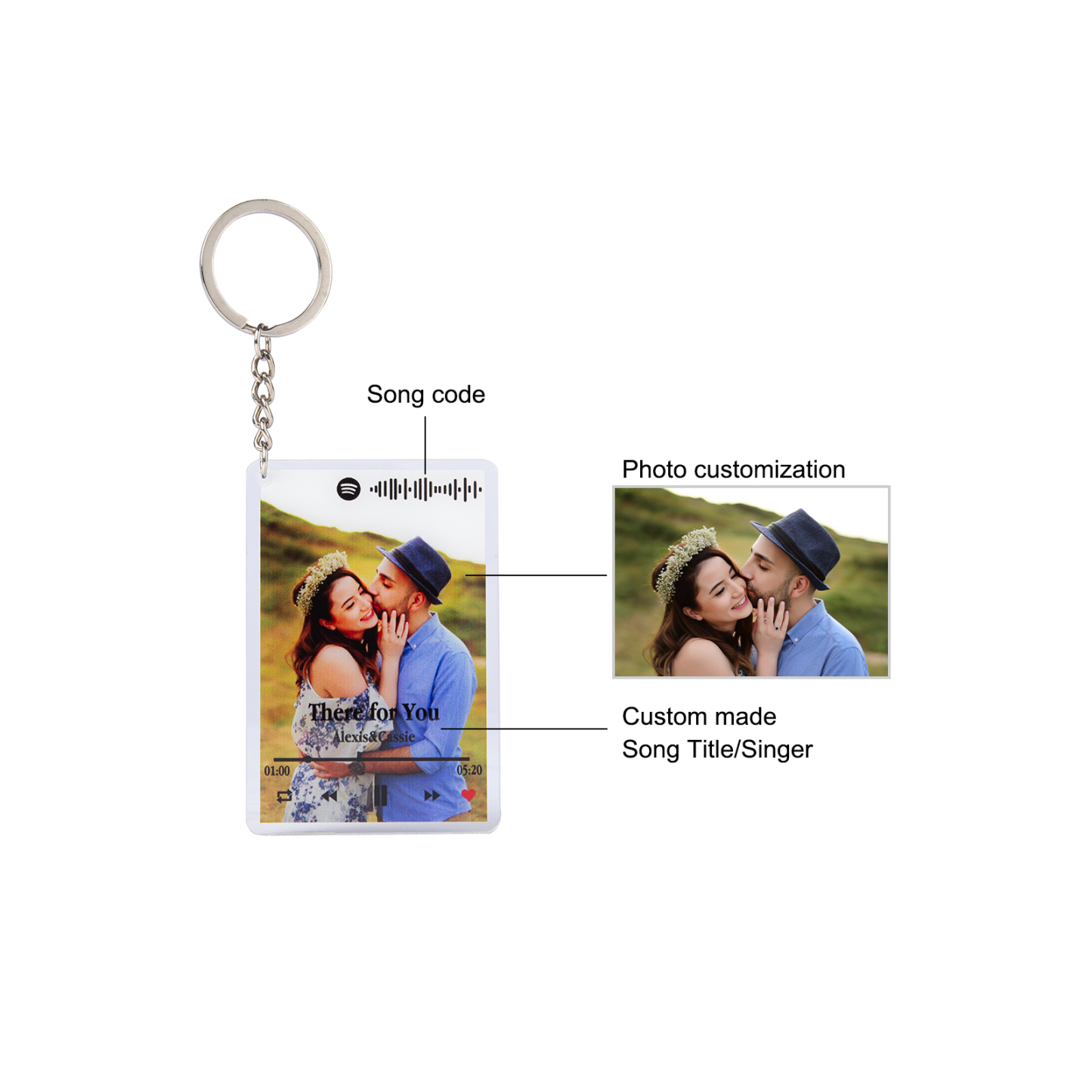 Personalized Spotify Code Keychain Custom 1 photo Keychain Gifts For Her
