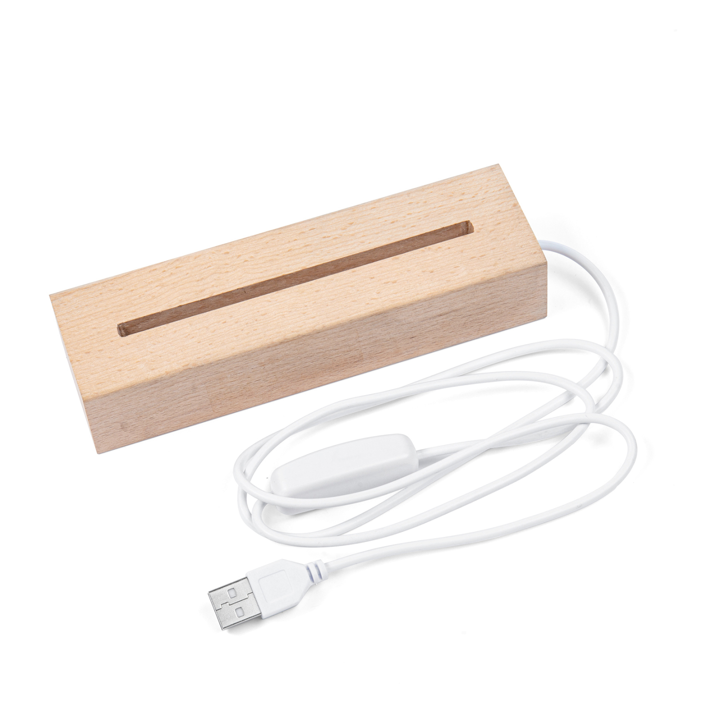 - Wood light base with warm white glowing light