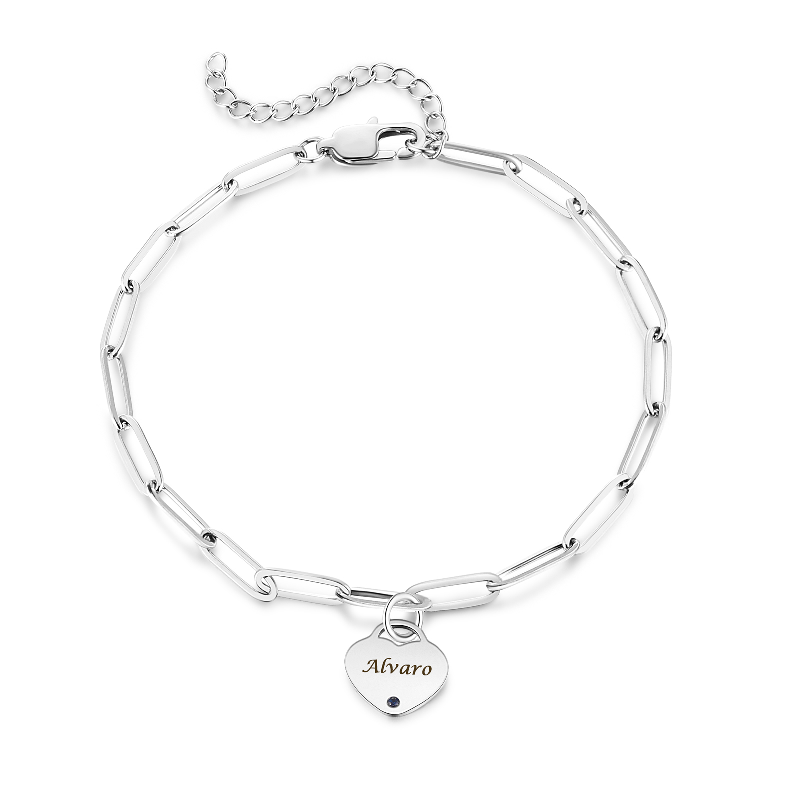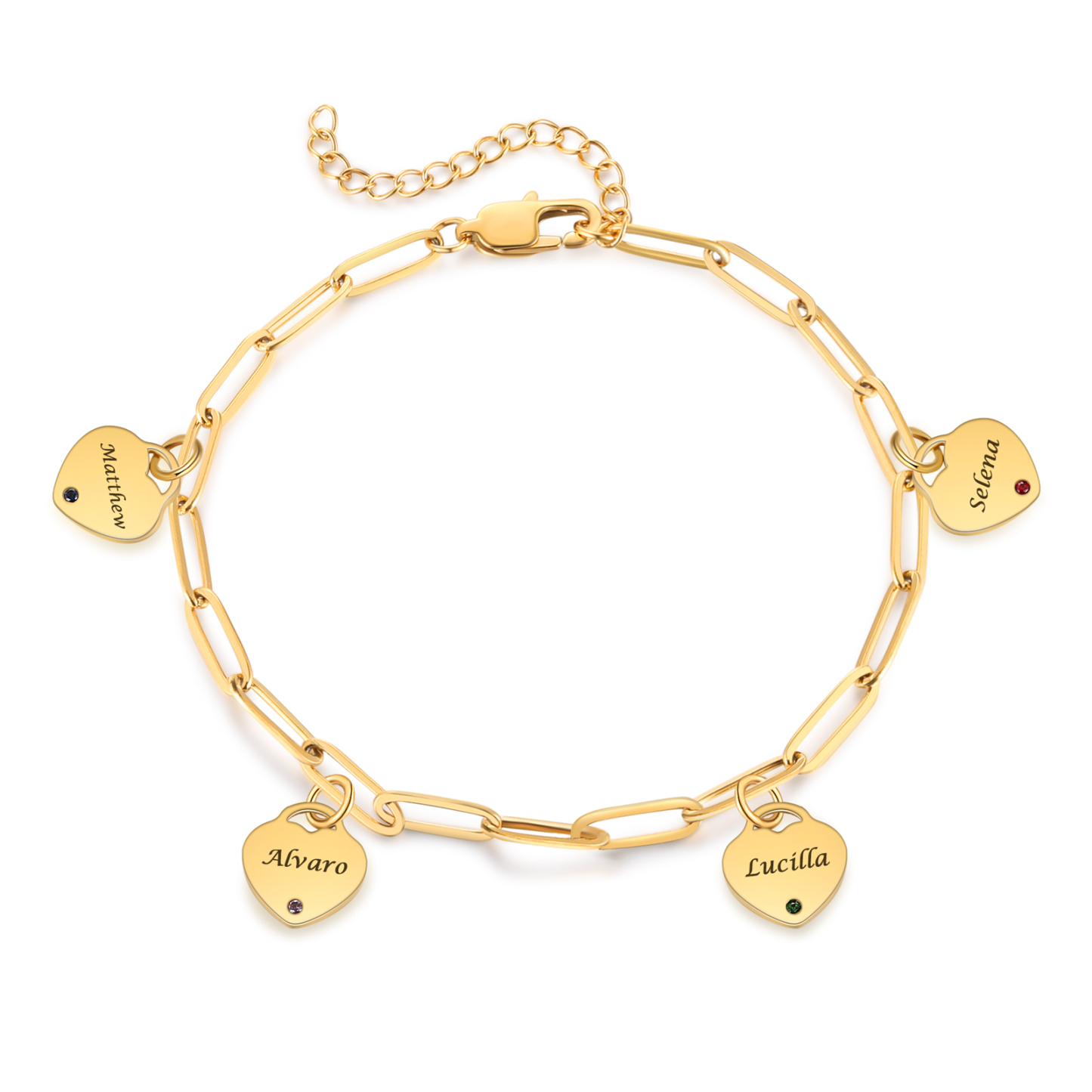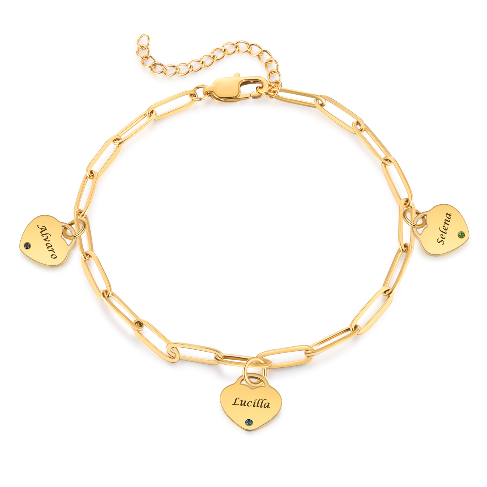 - Paperclip-link anklet, customized with 1–5 name charms and matching birthstones