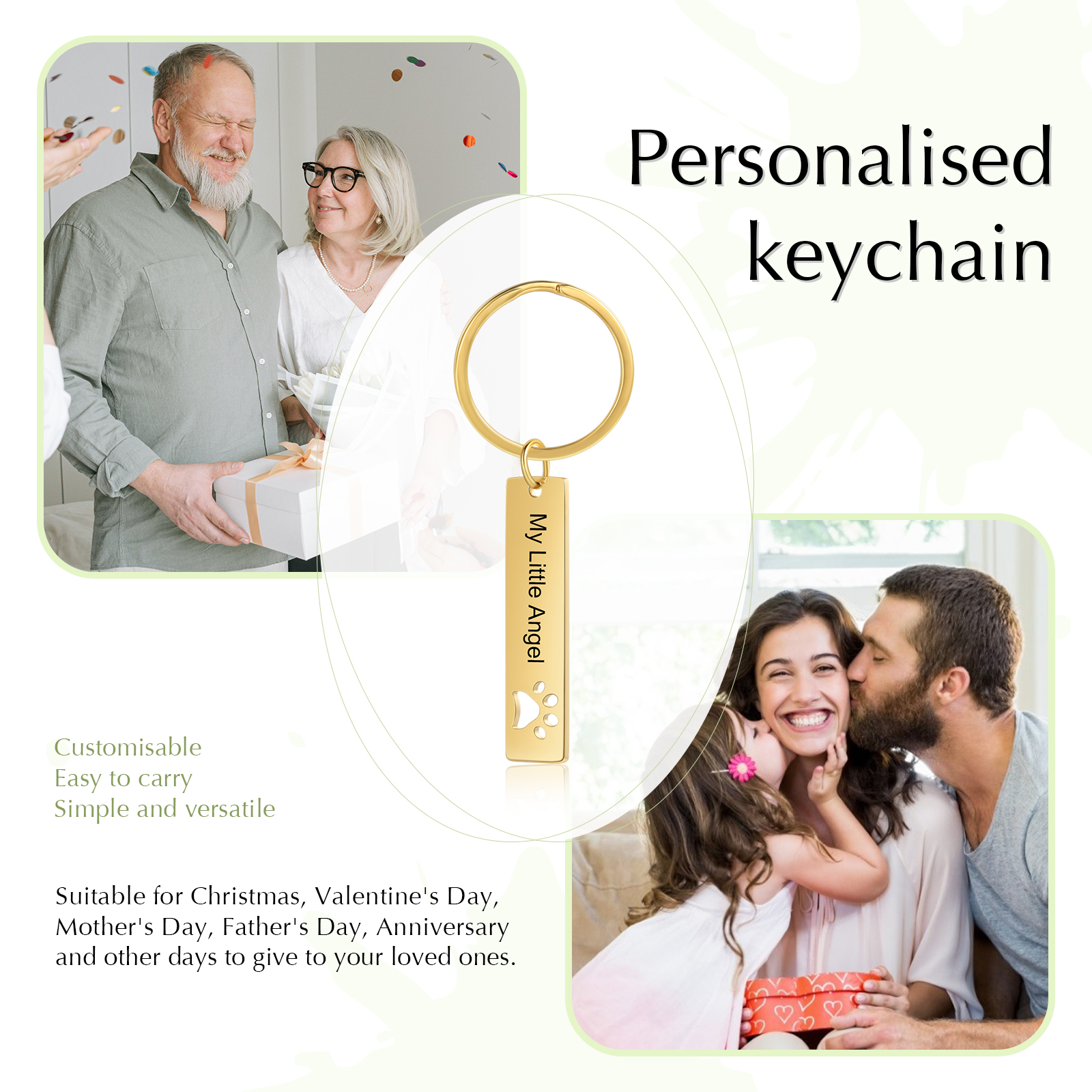 Our Keychain is a special gift! It can be customized with text.