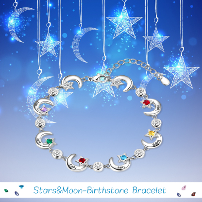 Personalized Moons And Stars Bracelet With 6 Birthstones Custom Names Bracelet Gift For Women