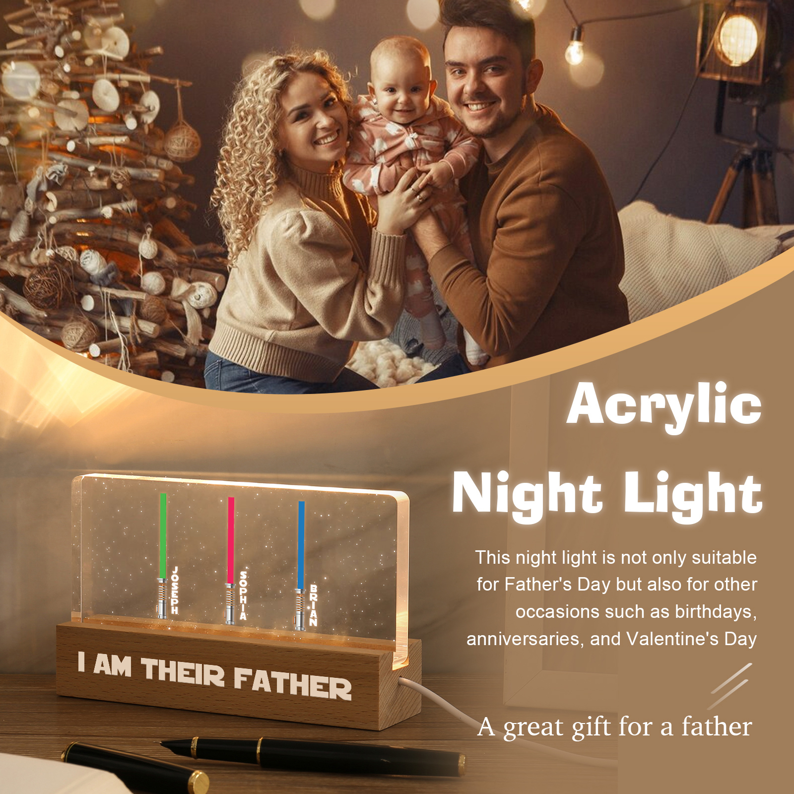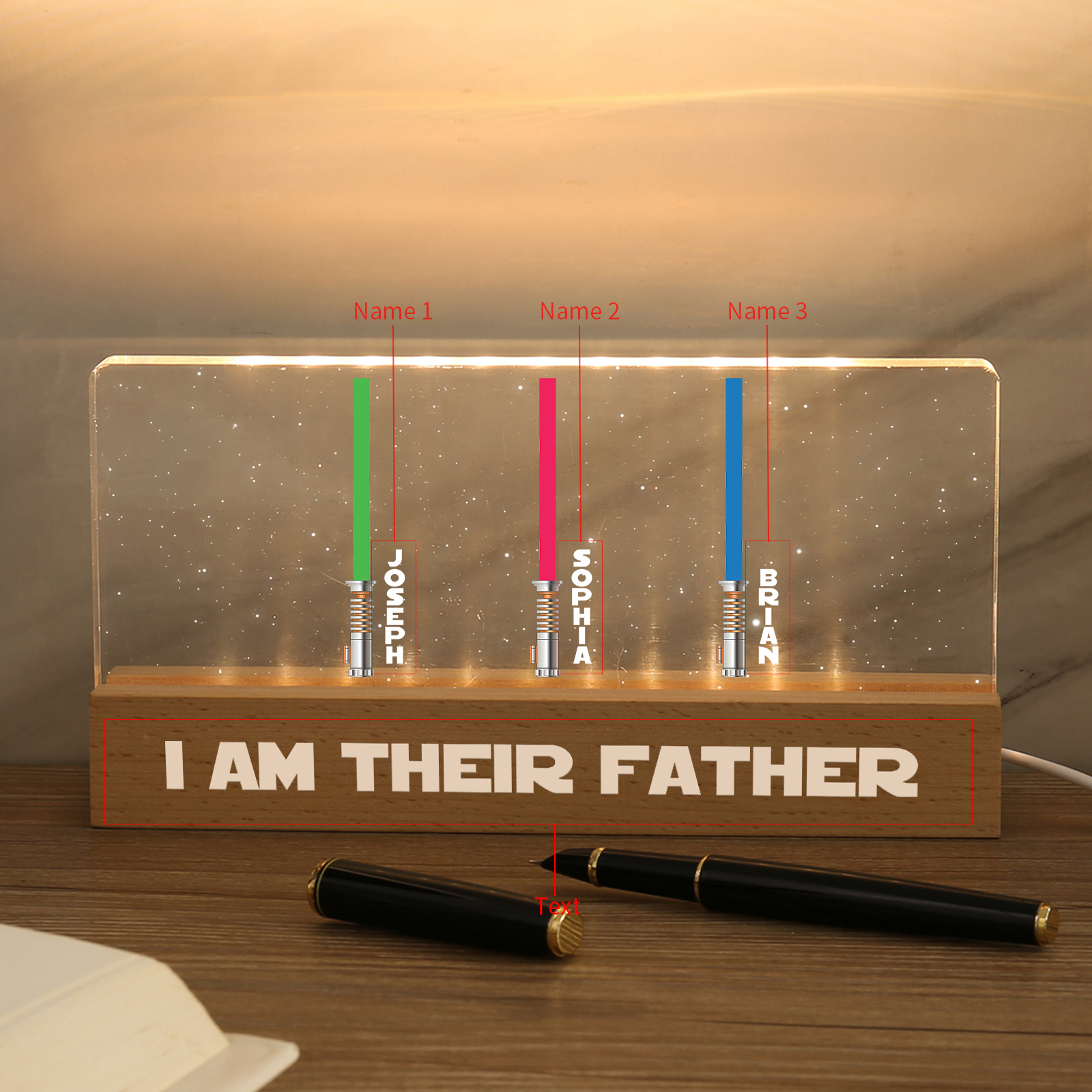 💡Customize a Star Wars Table Lamp with Dad's Name! 🌟 Light up Dad's world with a unique gift. ❤️This stylish table lamp with his name and impressive Star Wars design will add a modern touch to his space. Brighten his day with personalized warmth and style. Order now to brighten his day! 🥰