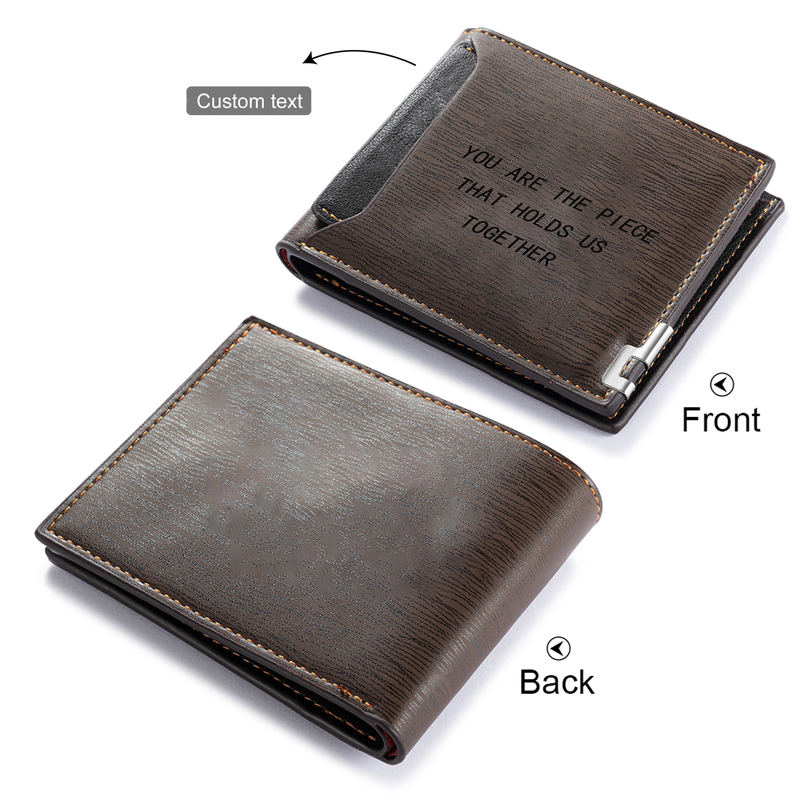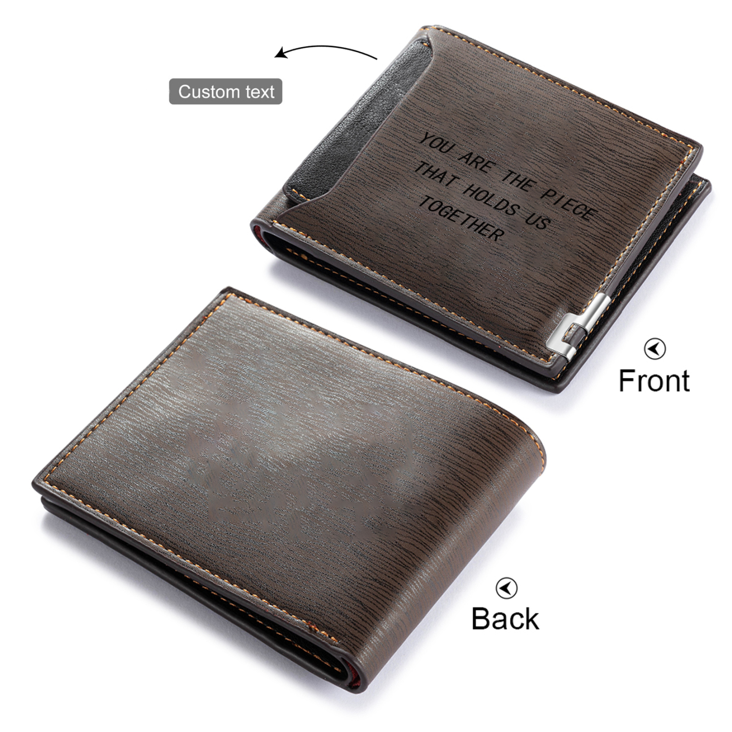 Personalized Text Leather Wallet Engraved Short Purse Folding Wallet Gifts For Men