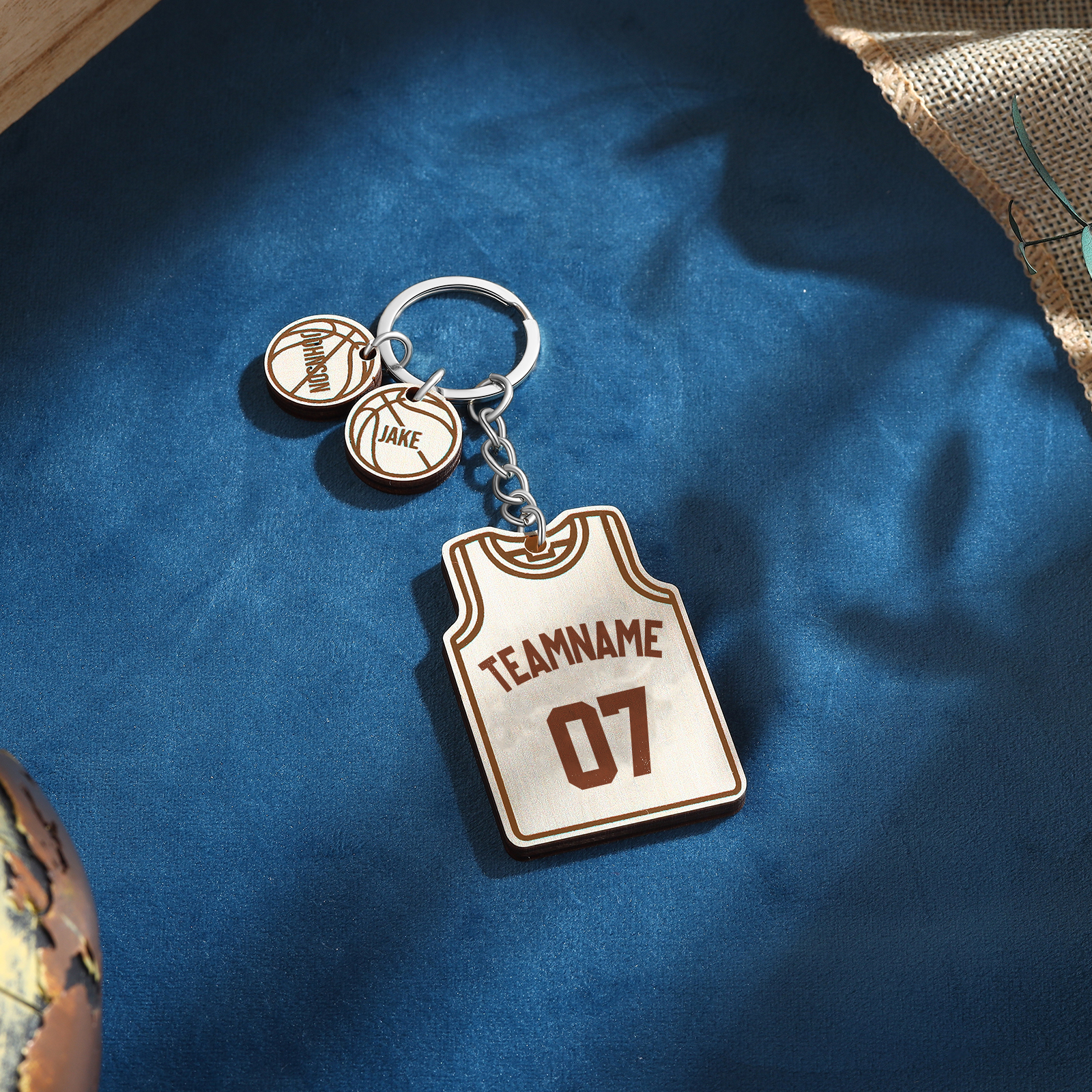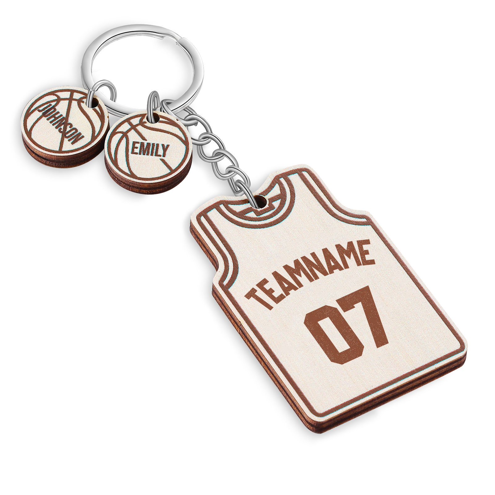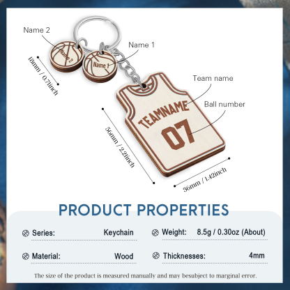 Personalized Text & Numbers & 2 Names Wooden Basketball Keychain for Him
