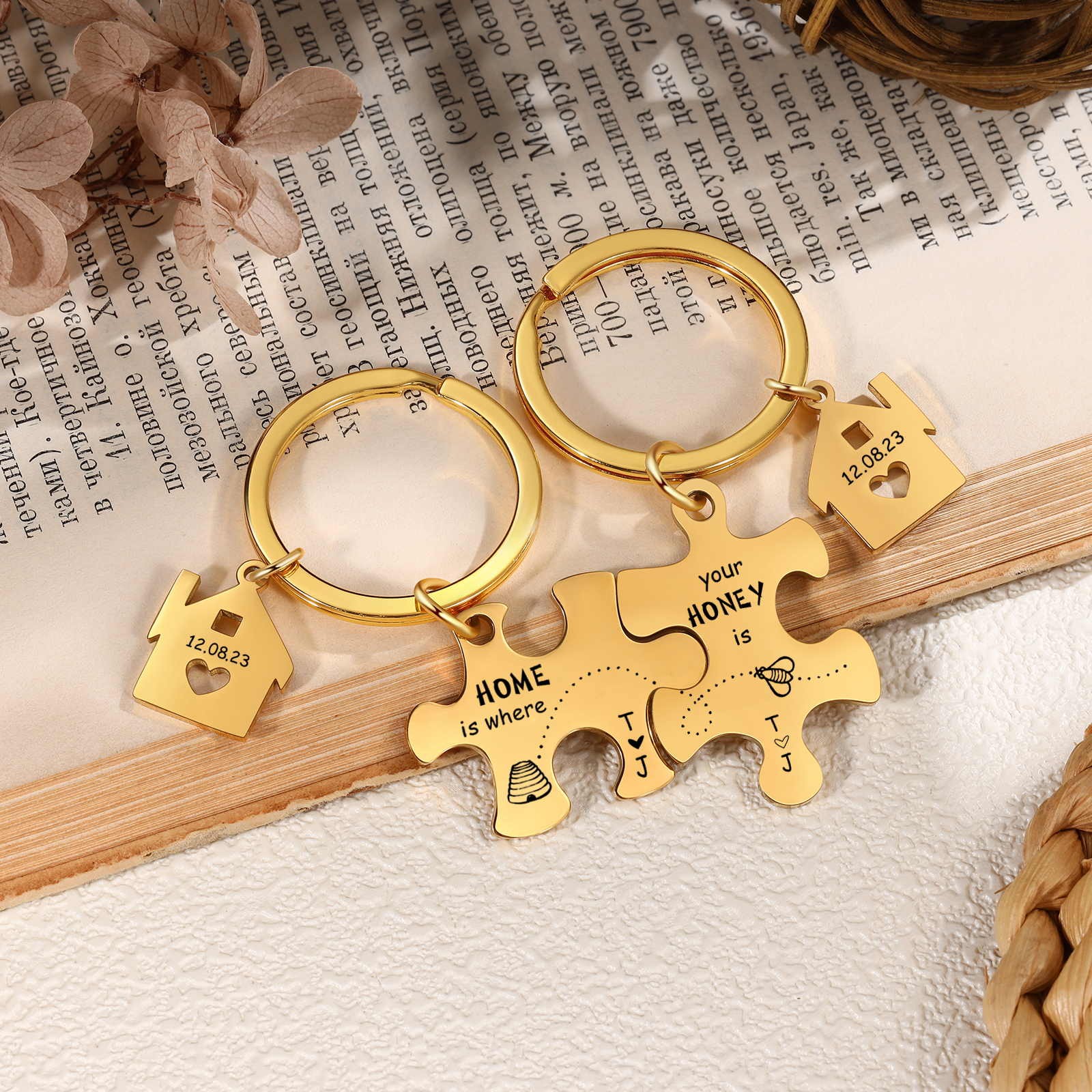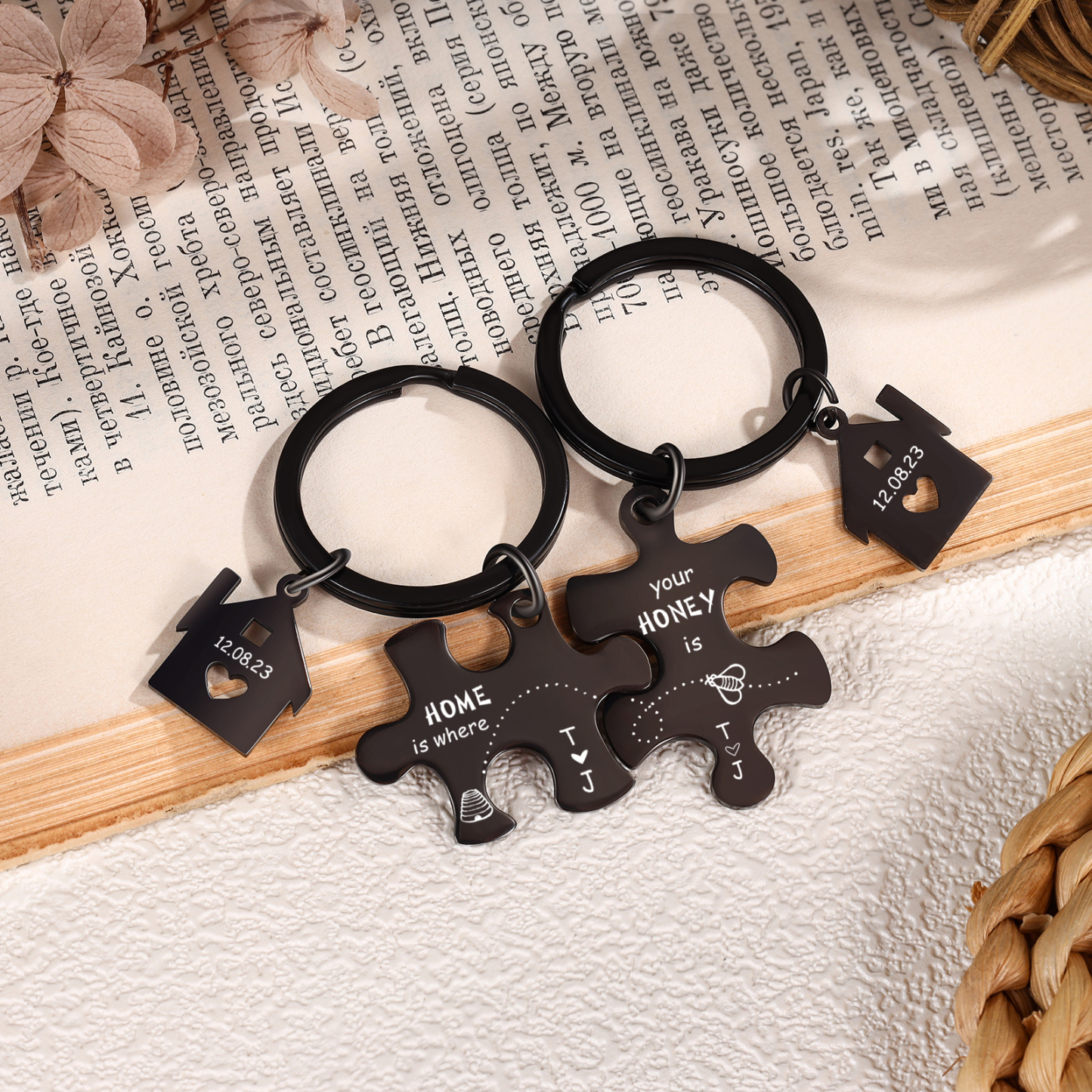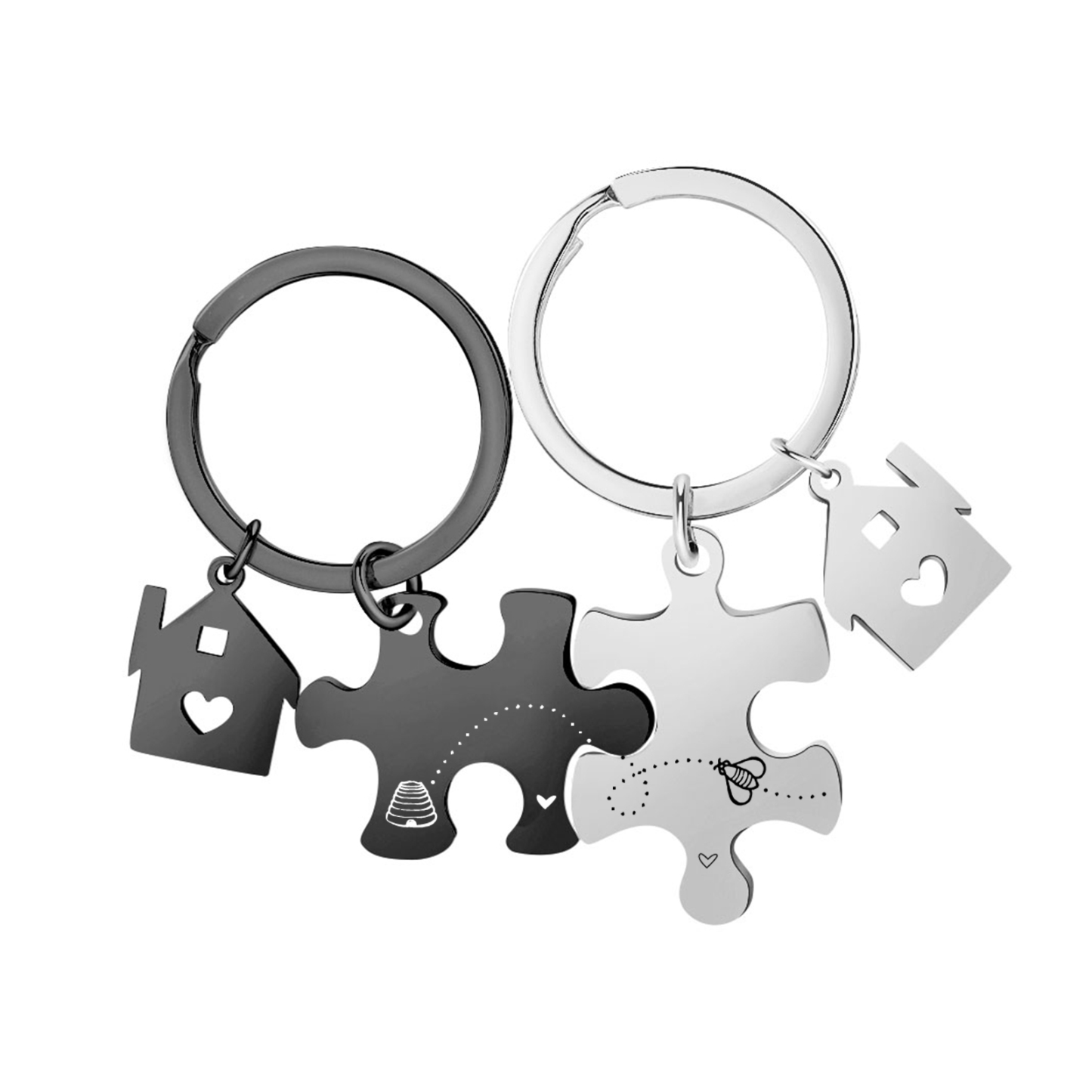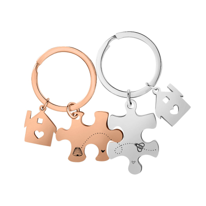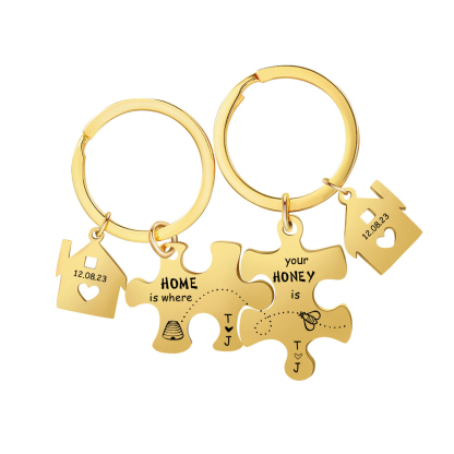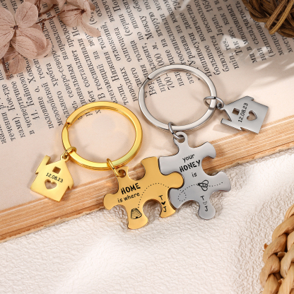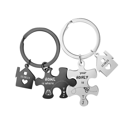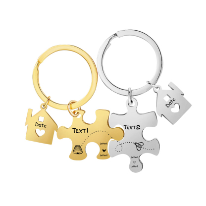 Personalized Text Puzzle Couple Keychain Engrave Date Matching Couple Gifts, Special Gift For Him/Her