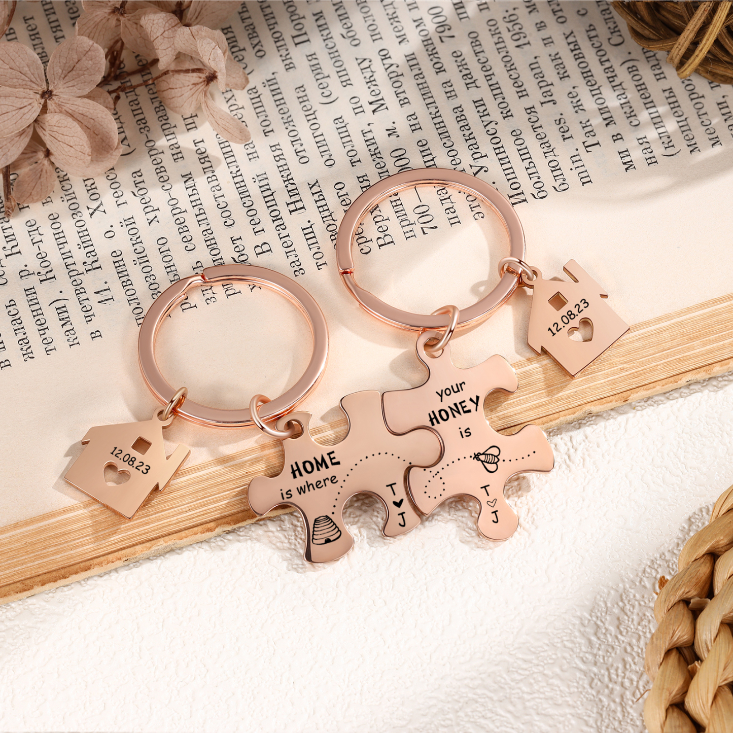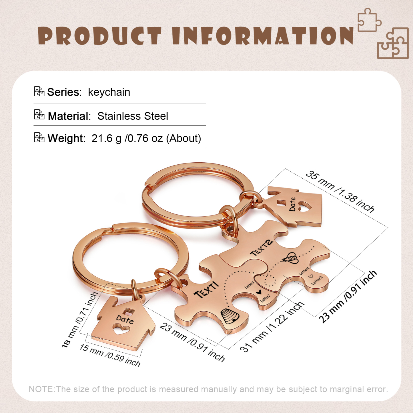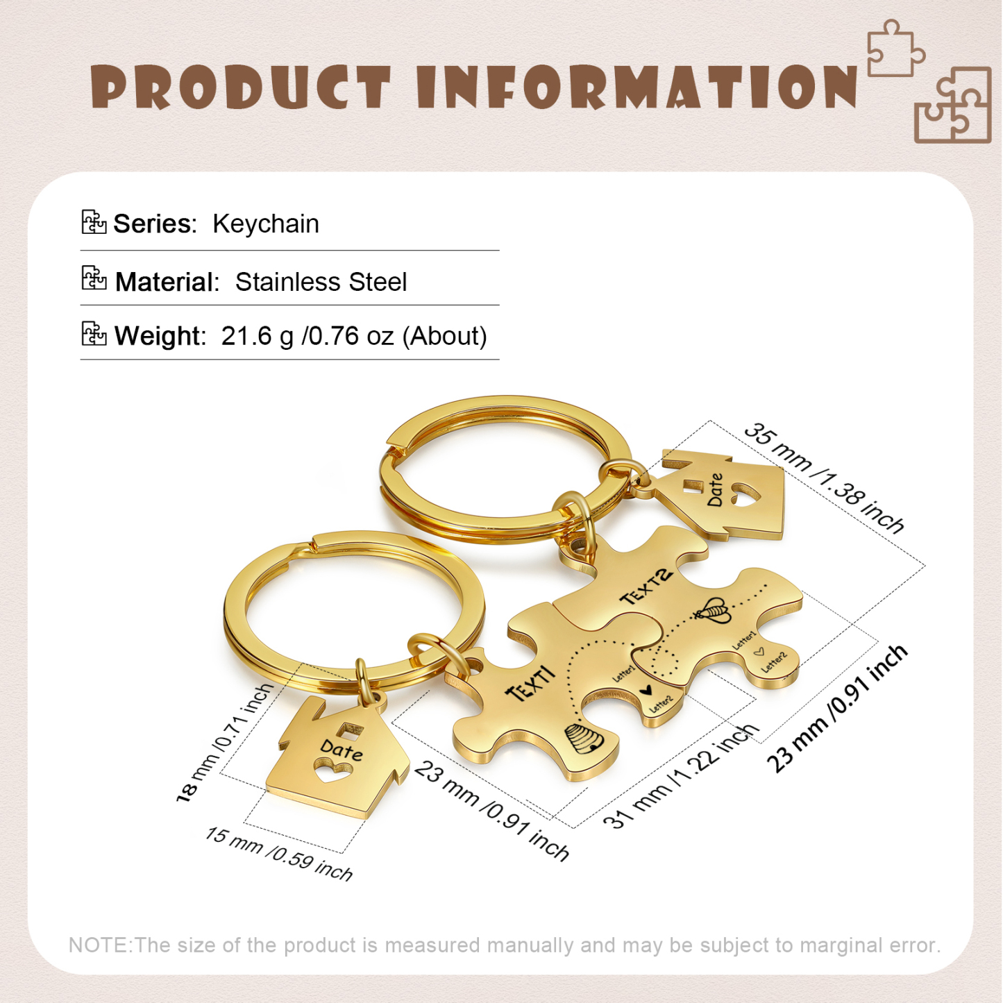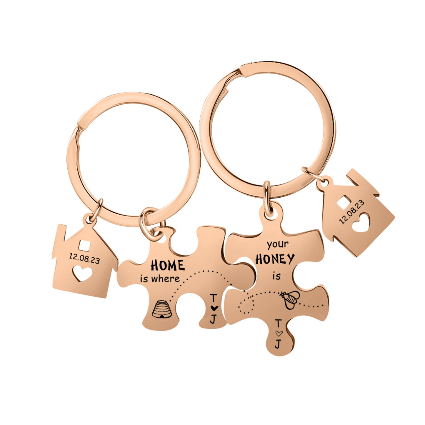 Personalized Text Puzzle Couple Keychain Engrave Date Matching Couple Gifts, Special Gift For Him/Her