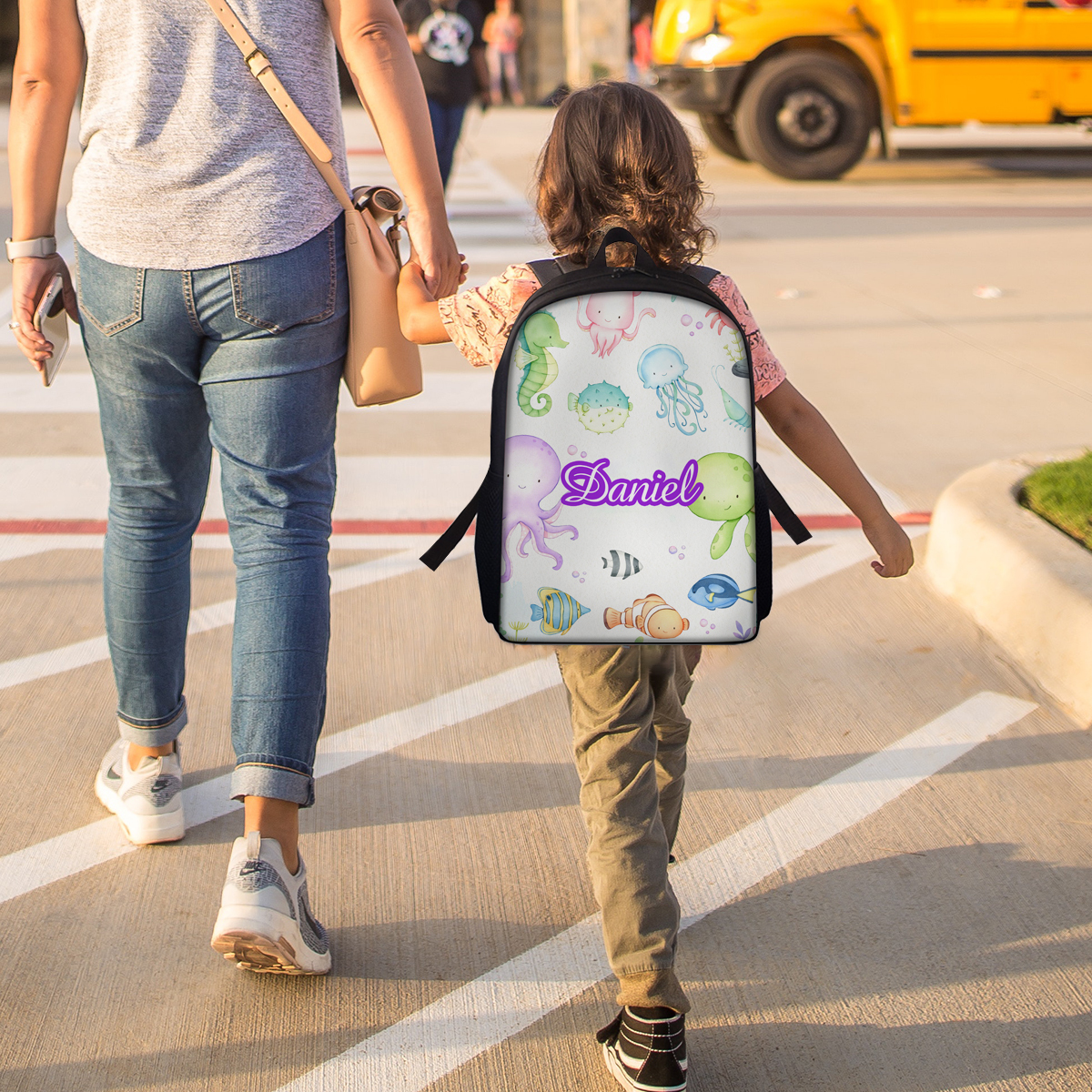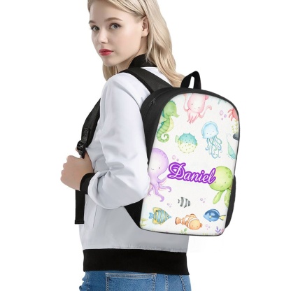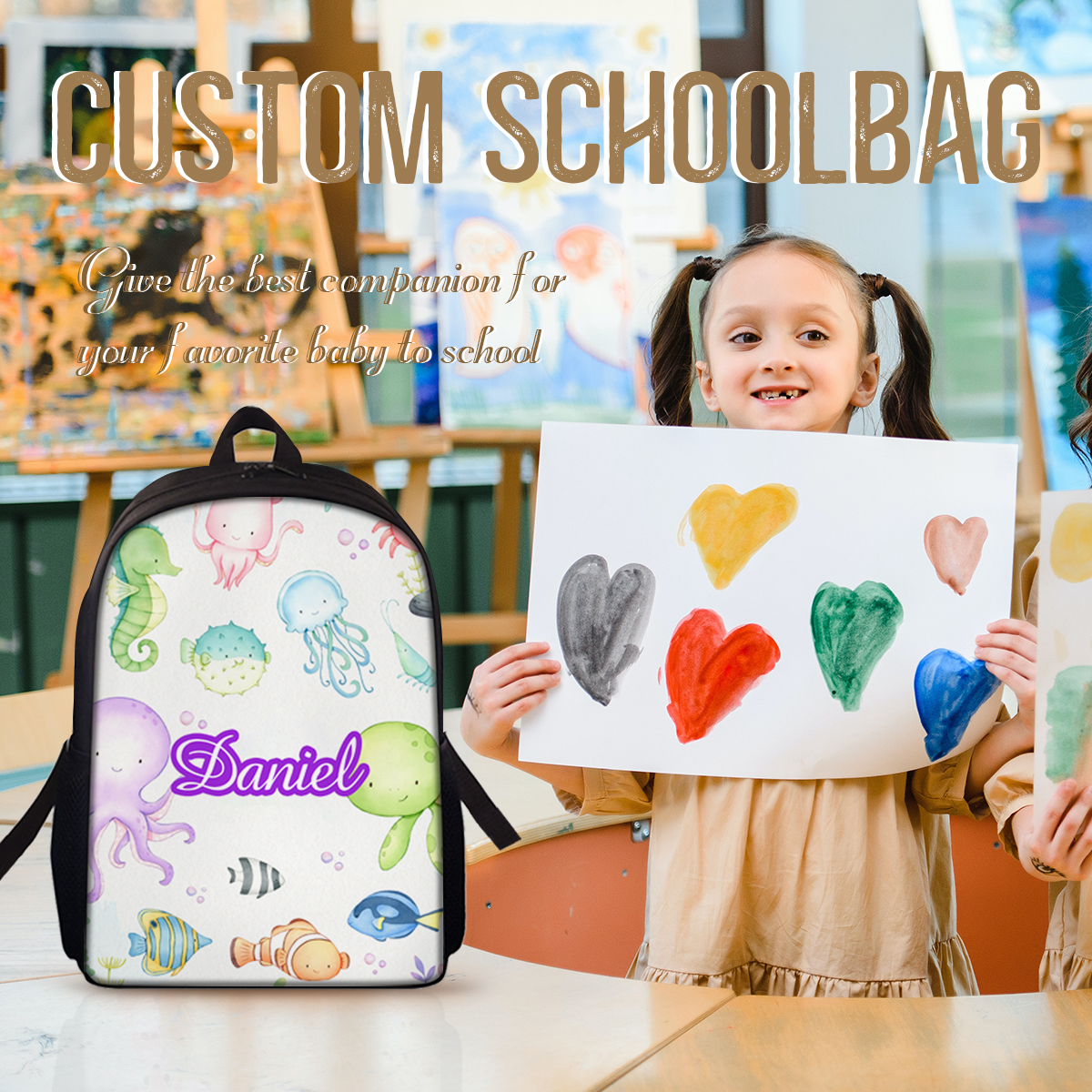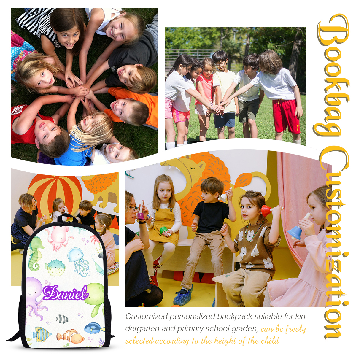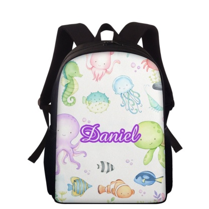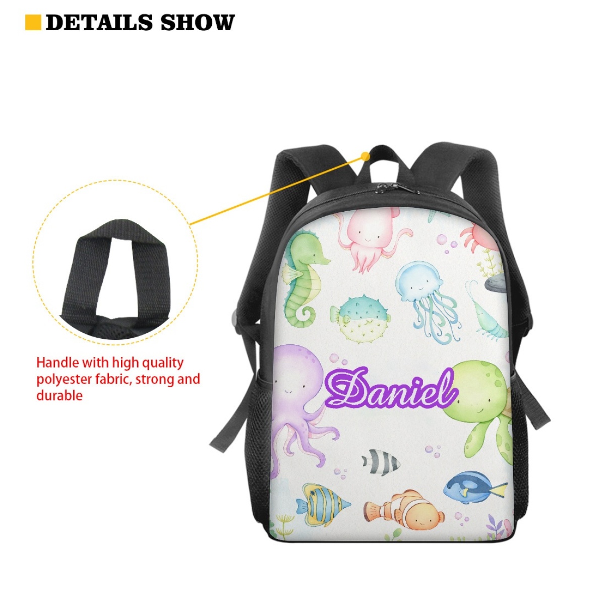 Personalized Underwater Animals School Bag Name Backpack, Customized Schoolbag Travel Bag For Kids