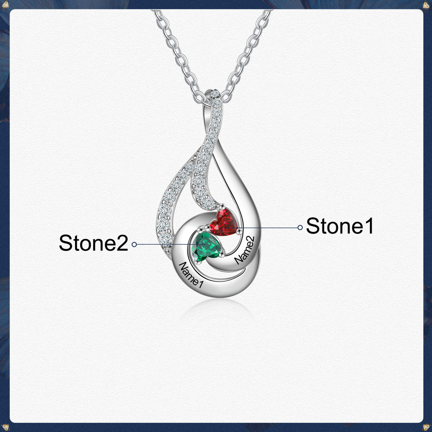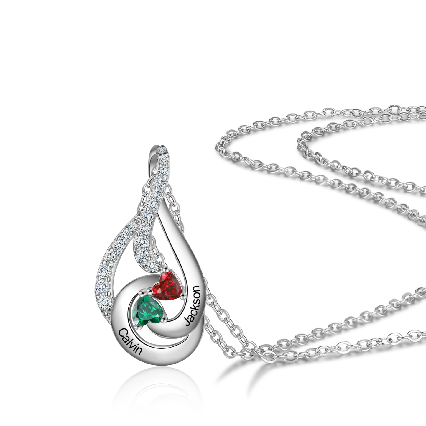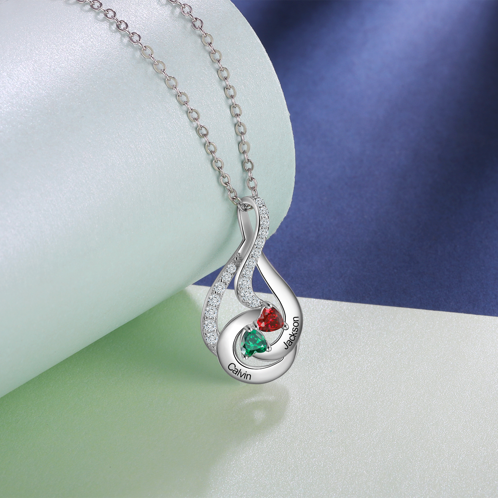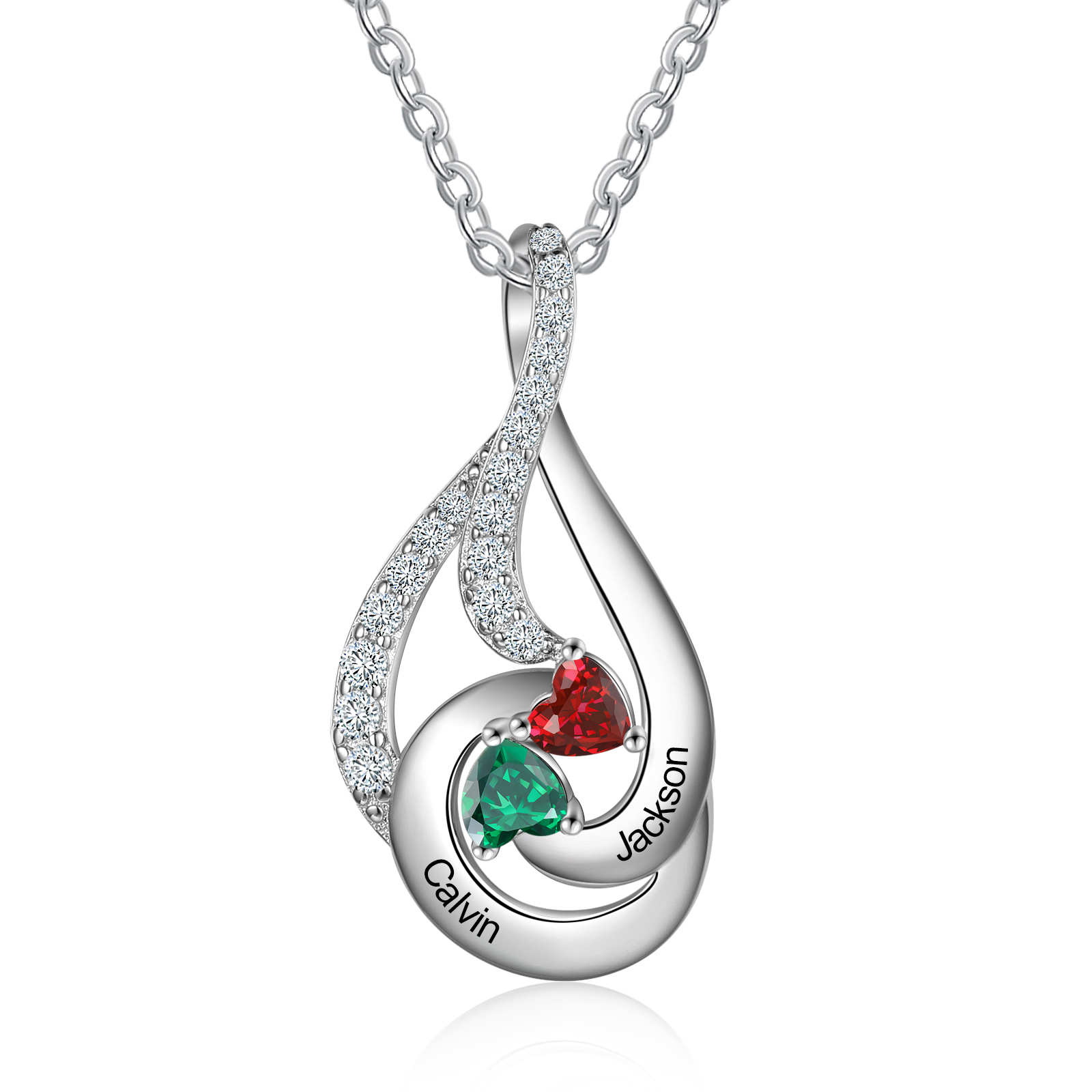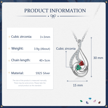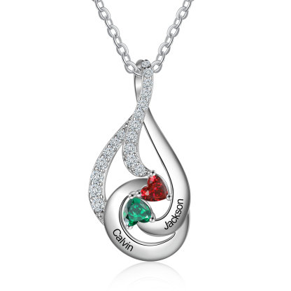 Personalized Water Droplet Necklace With 2 Birthstones Engraved Names Necklace Gift Foe Her