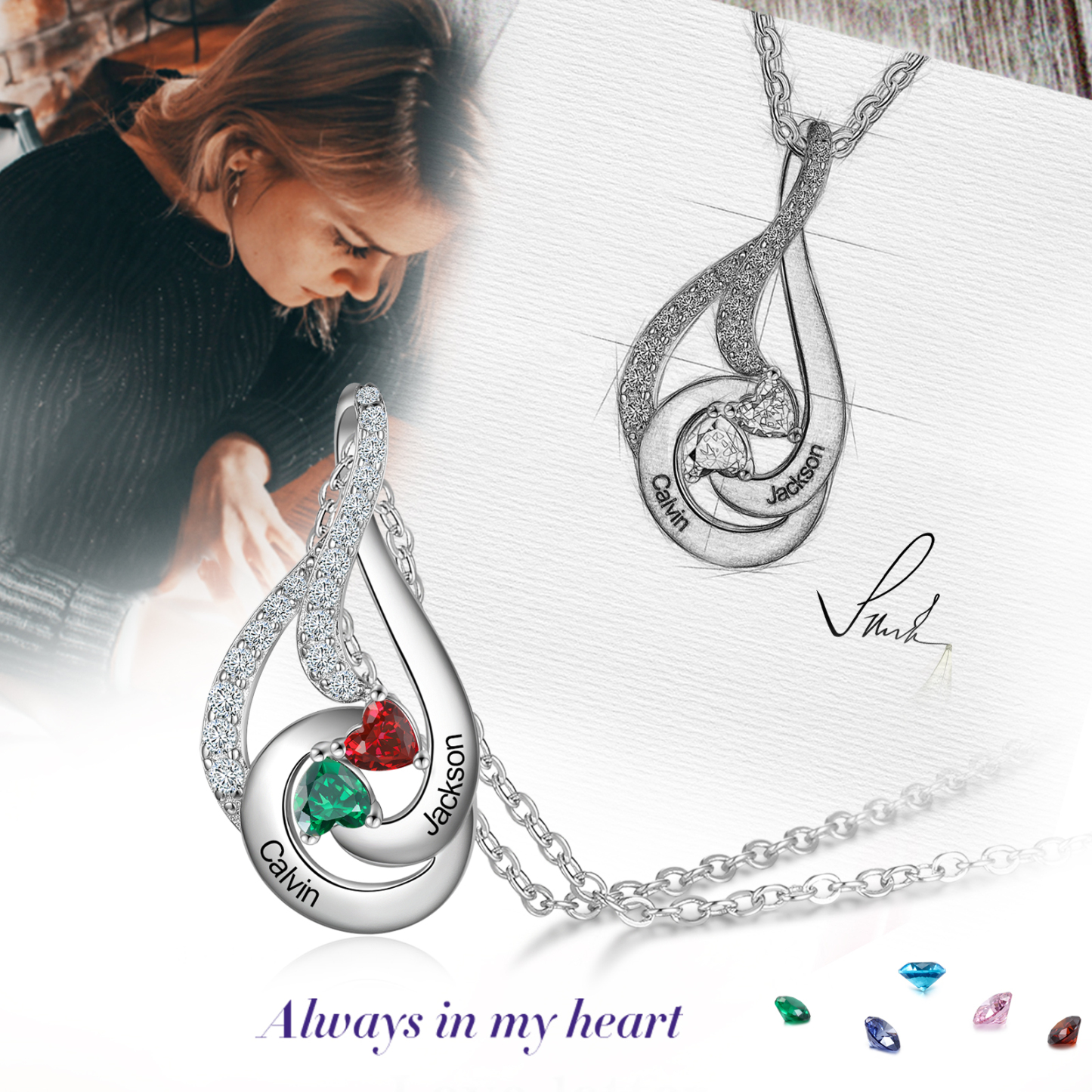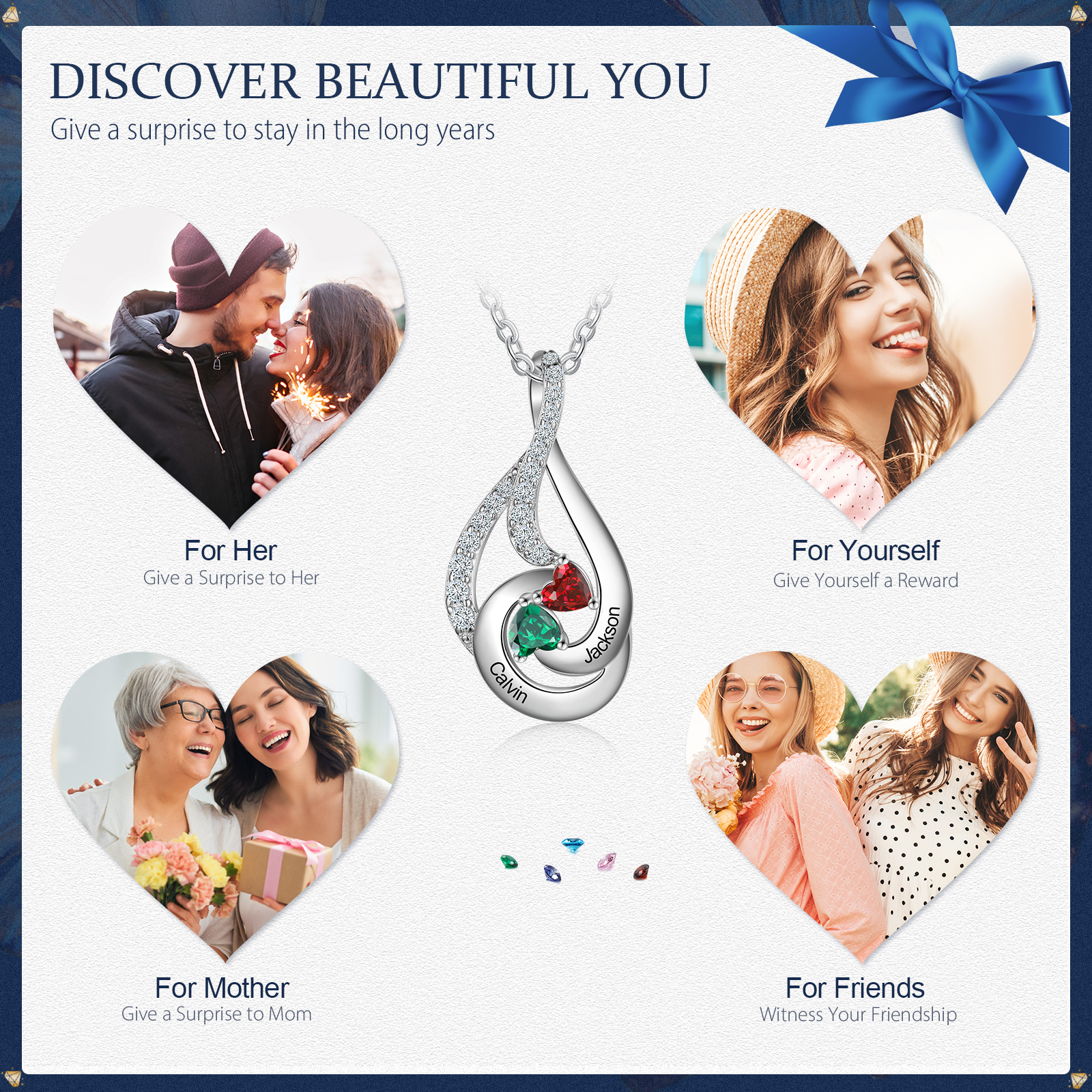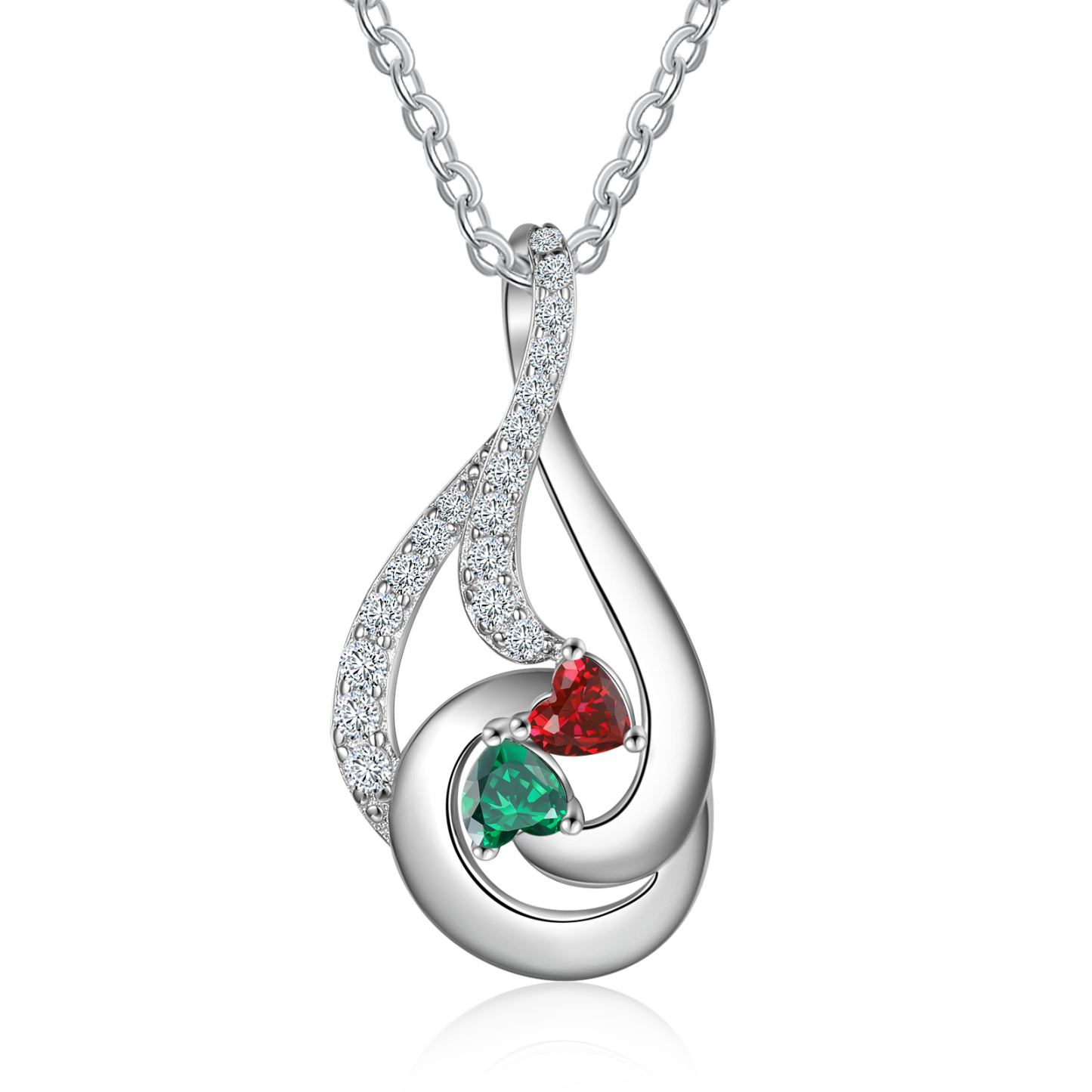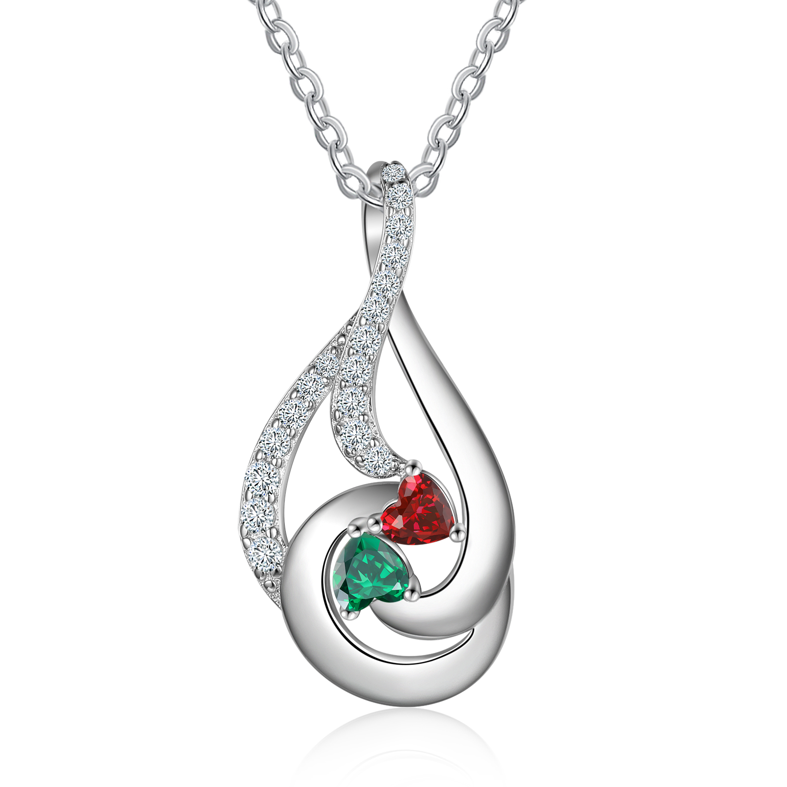Personalized Water Droplet Necklace With 2 Birthstones Engraved Names Necklace Gift Foe Her