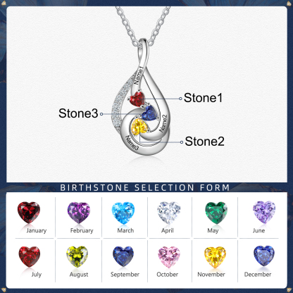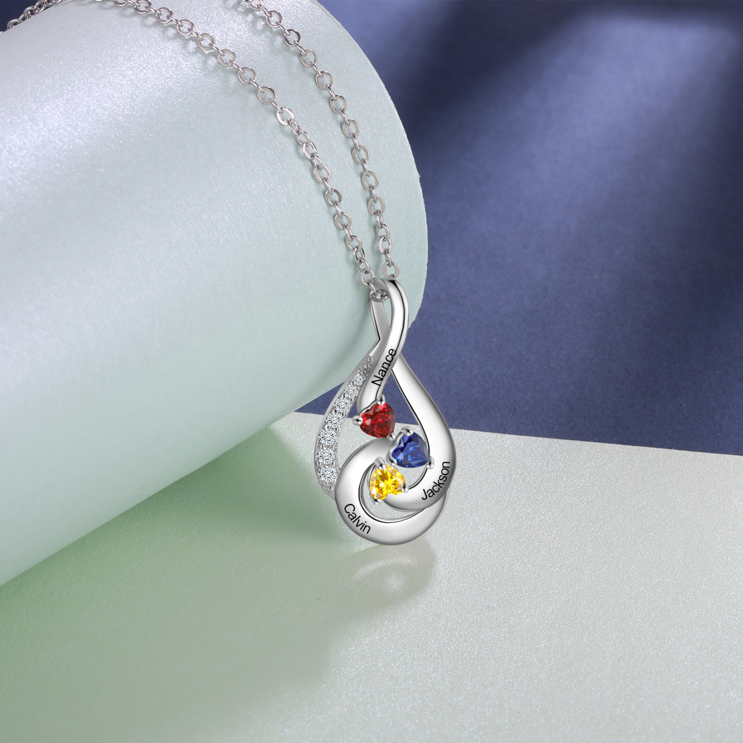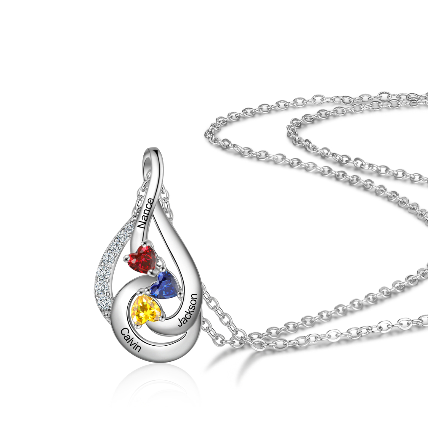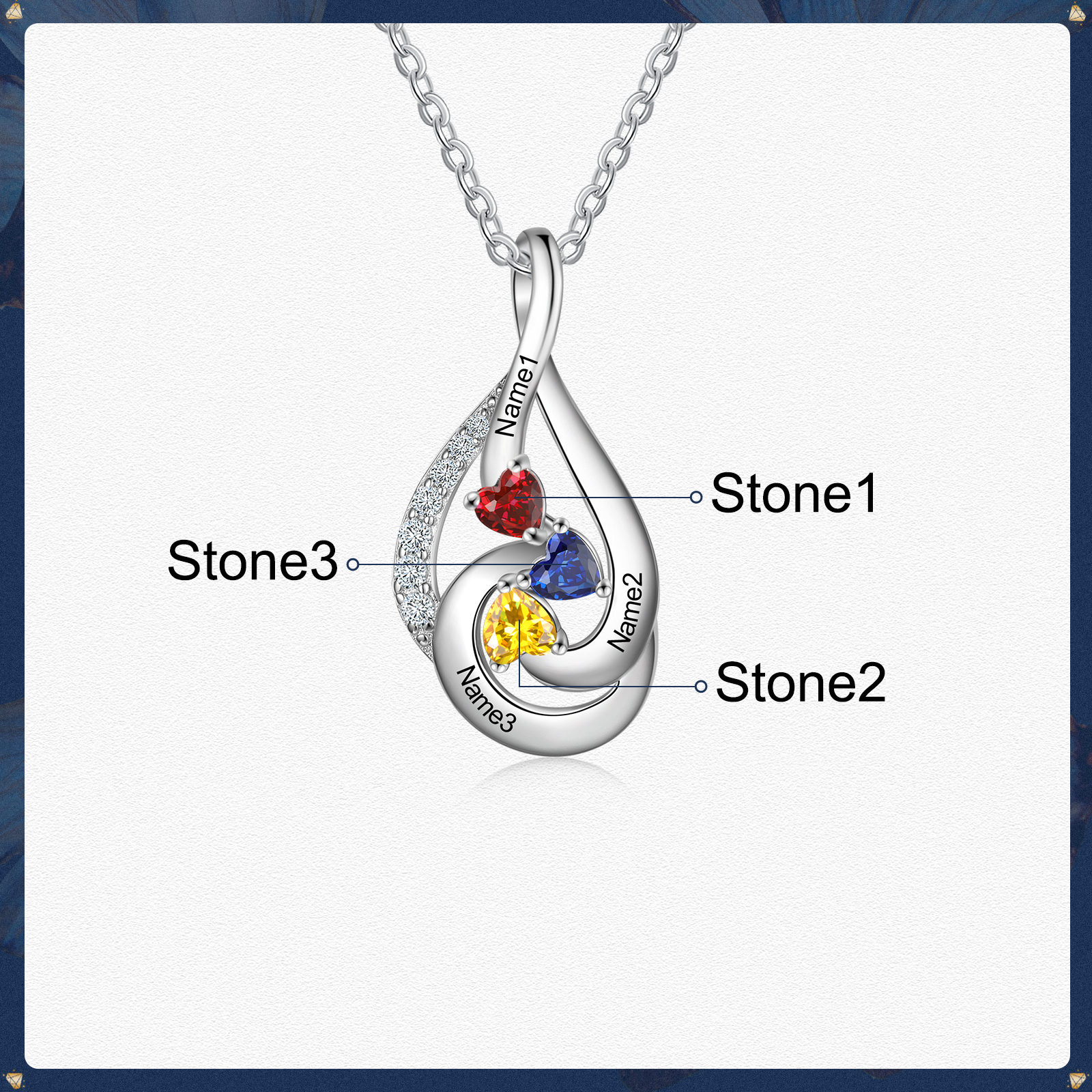 Personalized Water Droplet Necklace With 3 Birthstones Engraved Names Necklace Gift For Her