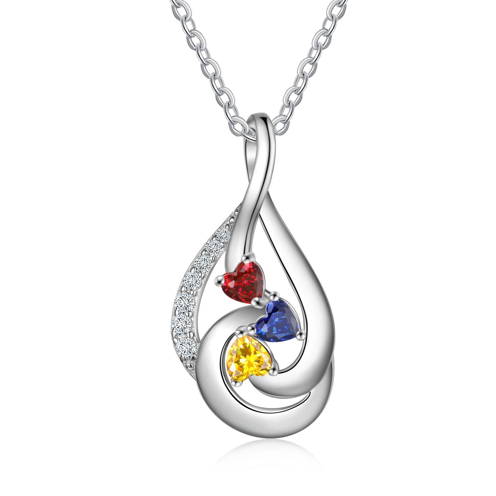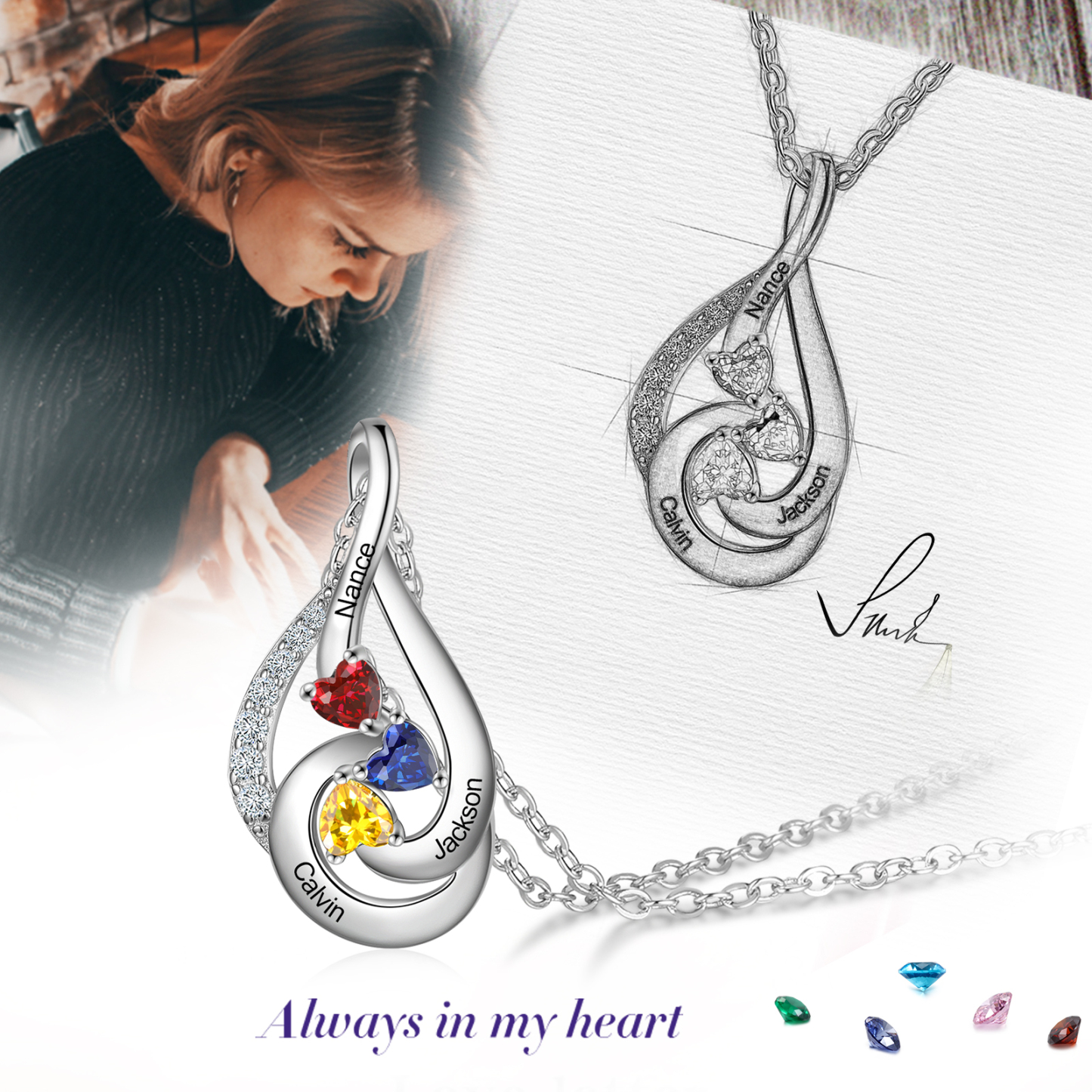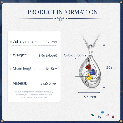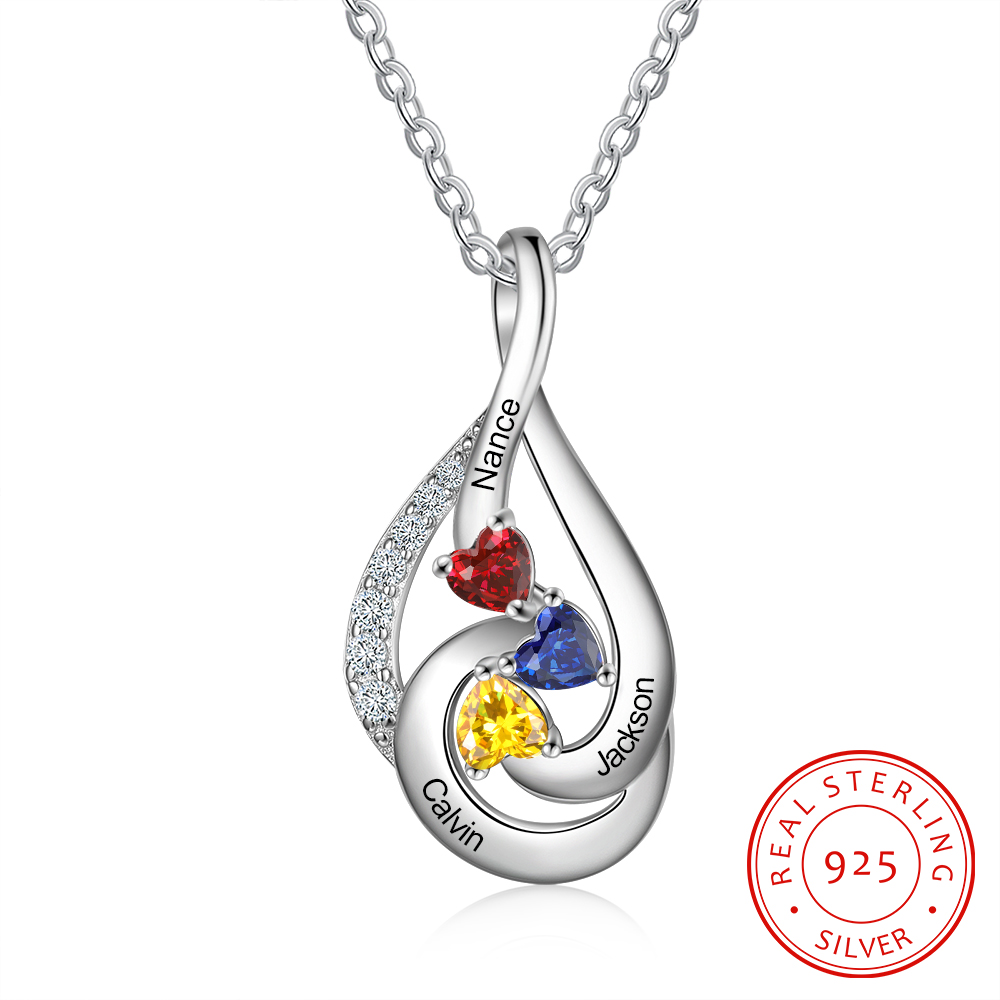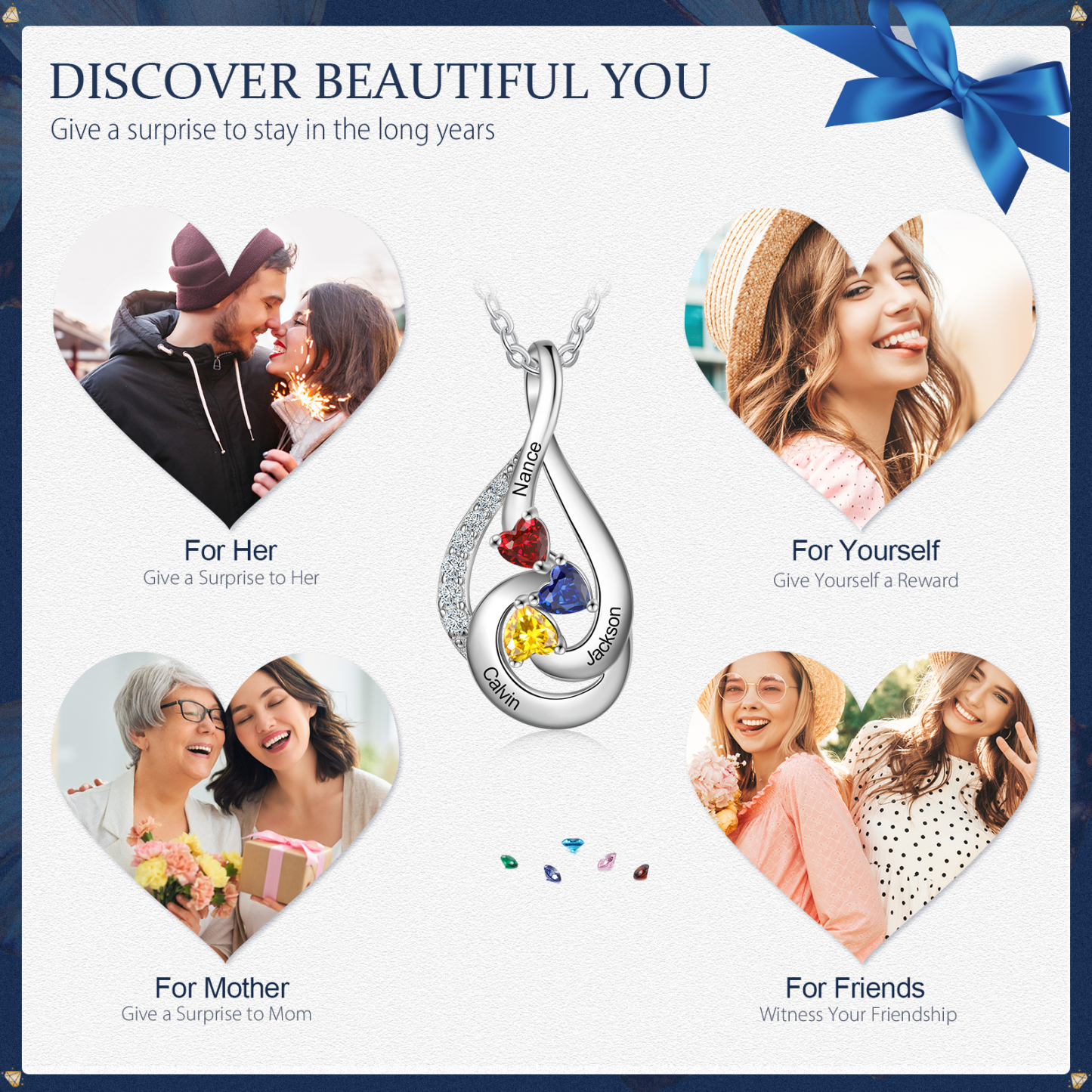 Personalized Water Droplet Necklace With 3 Birthstones Engraved Names Necklace Gift For Her
