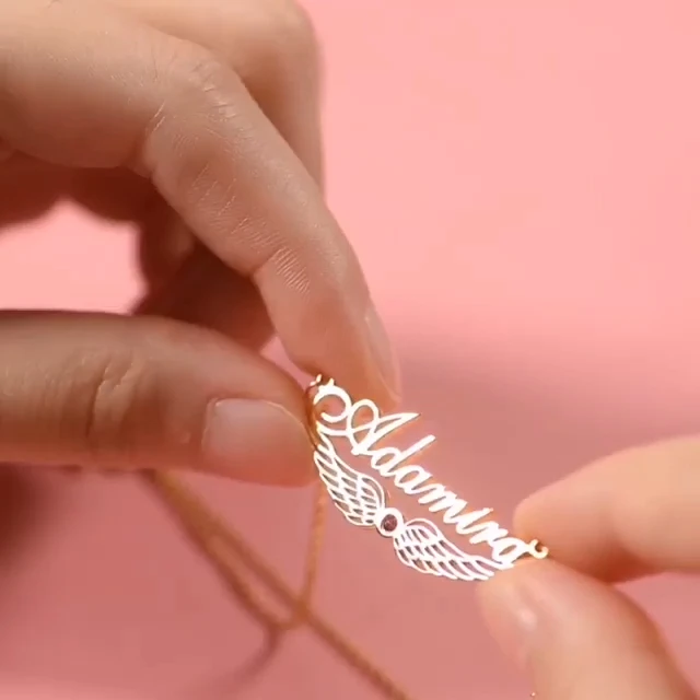 Personalized Wings Necklace With Birthstone Custom 1 Name Necklace Gift For Women