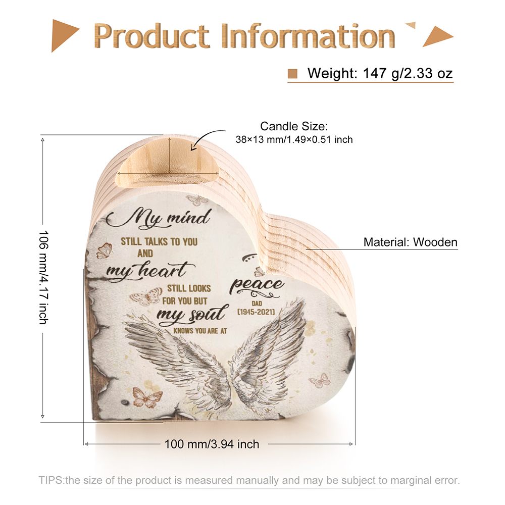 Personalized Wooden Heart Candle Holder Memorial Candlesticks "My mind still talks to you" Gifts For Lost of Loved One