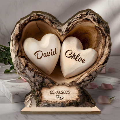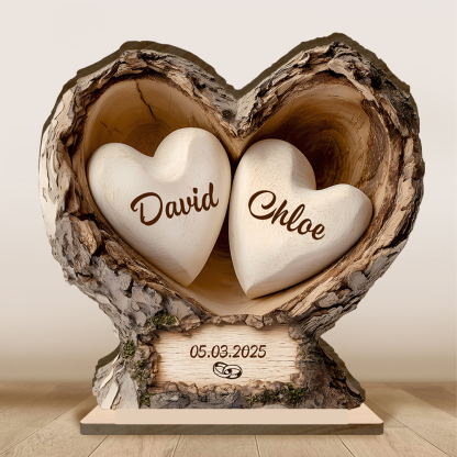 Give a touching and useful gift with this personalized heart-shaped wooden sculpture, designed for couples, parents, or close friends. Two hearts engraved with your names and a special date make it both an elegant decoration and an emotion-filled keepsake.