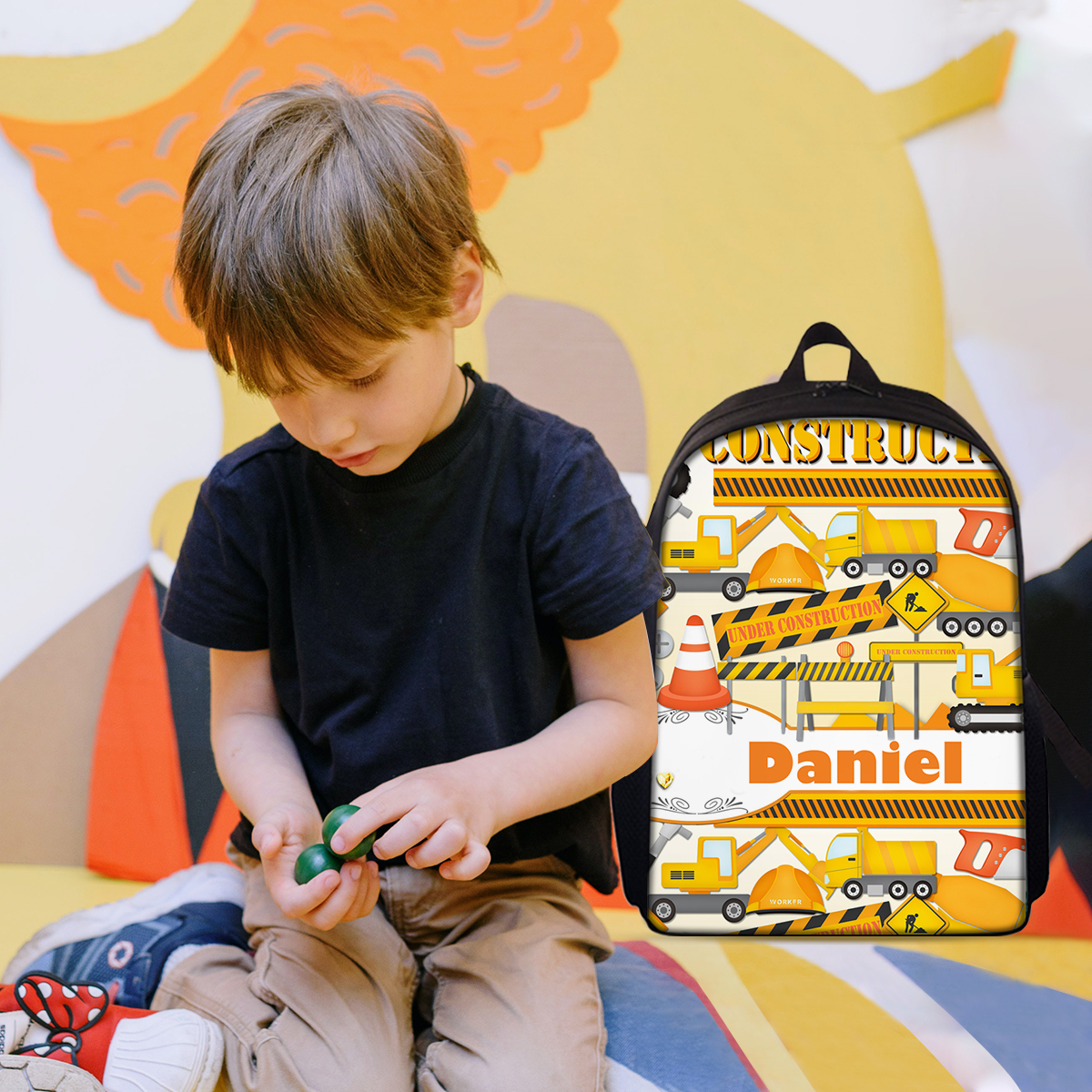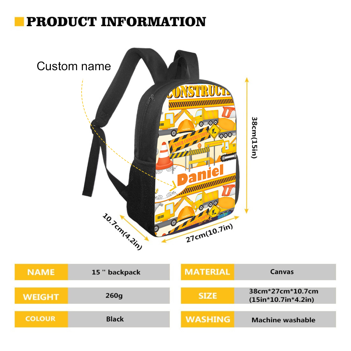 Personalized Work Machine School Bag Name Backpack, Customized Schoolbag Travel Bag For Kids