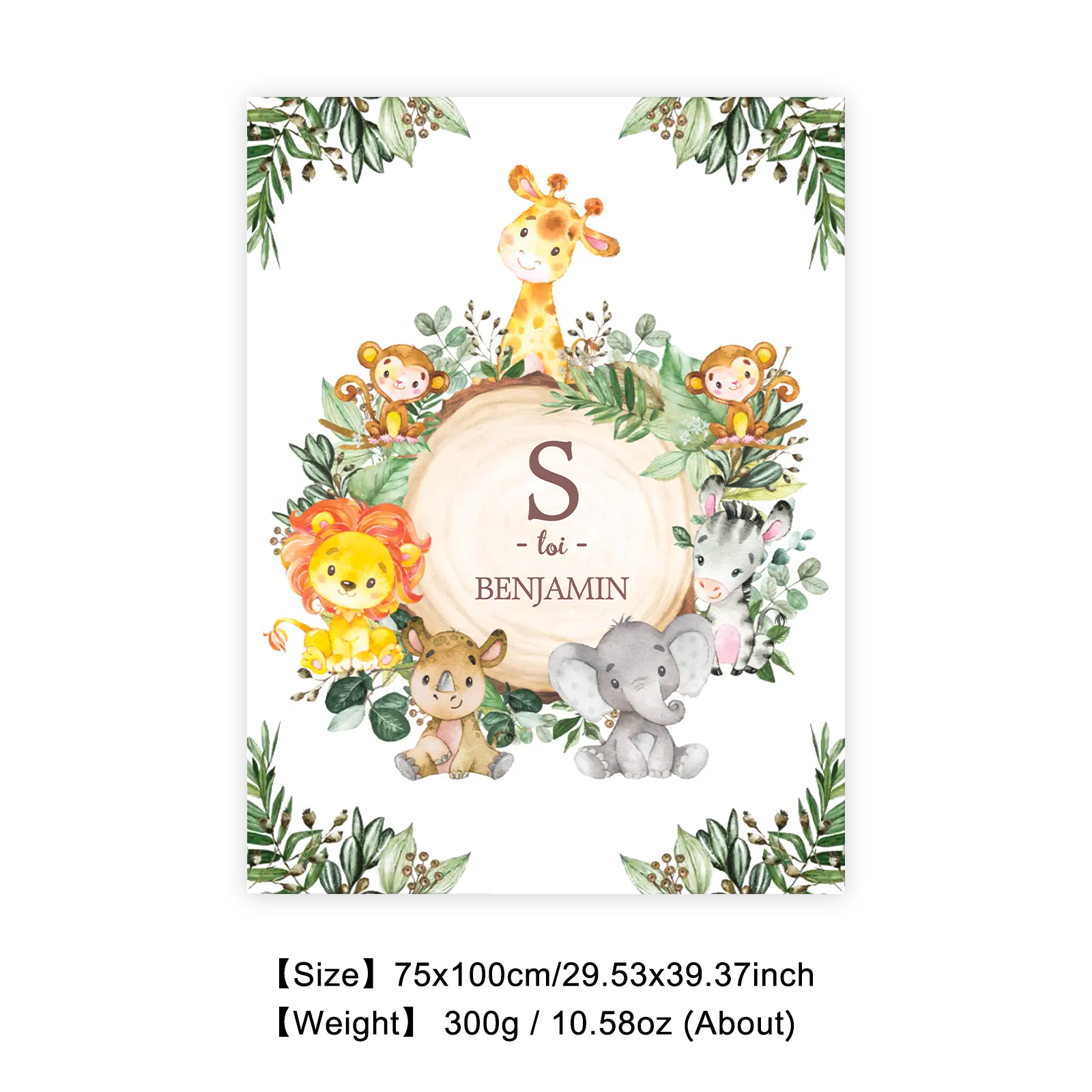 Personalized Zoo Blanket Custom Name Cute Cartoon Blanket