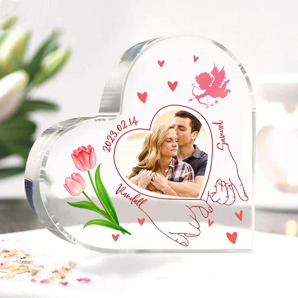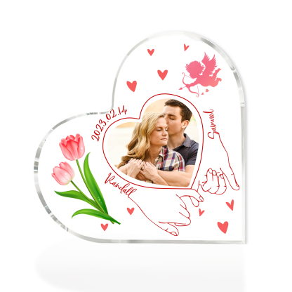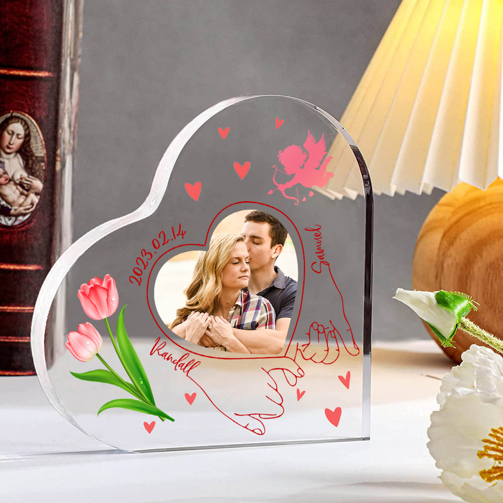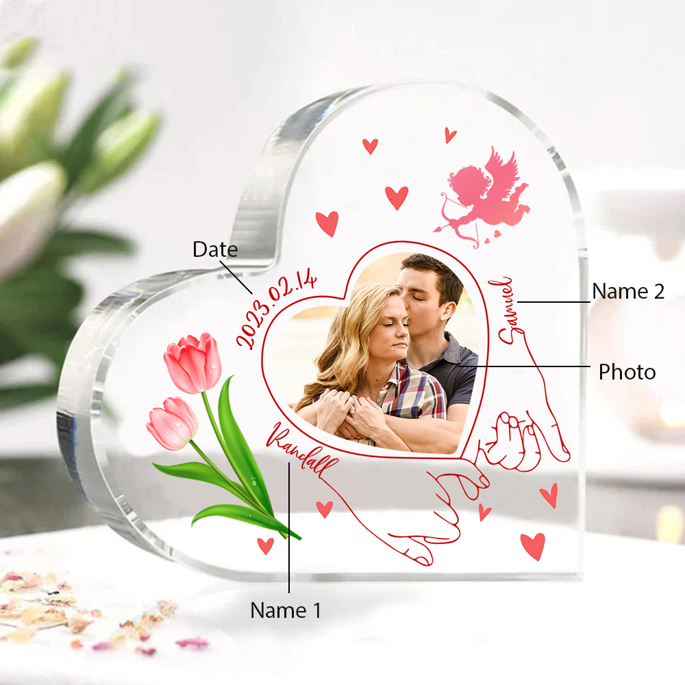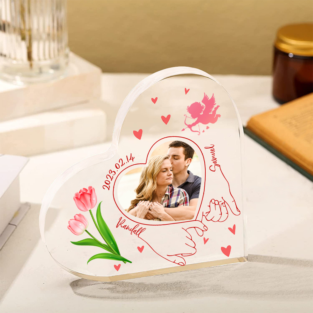 Photo-Personalized Couple Acrylic Ornament-Custom Acrylic Heart Keepsake Desktop Ornament for Couple