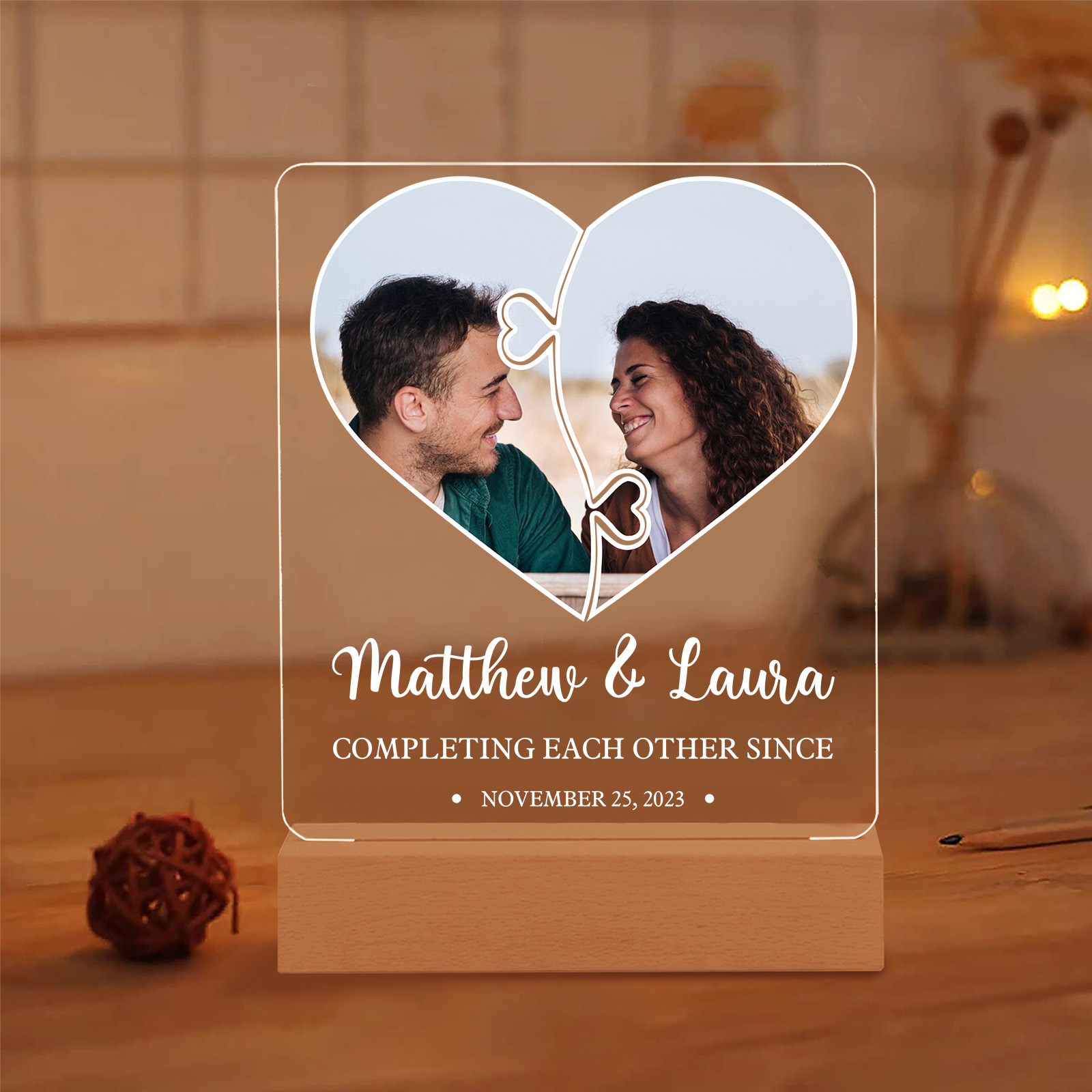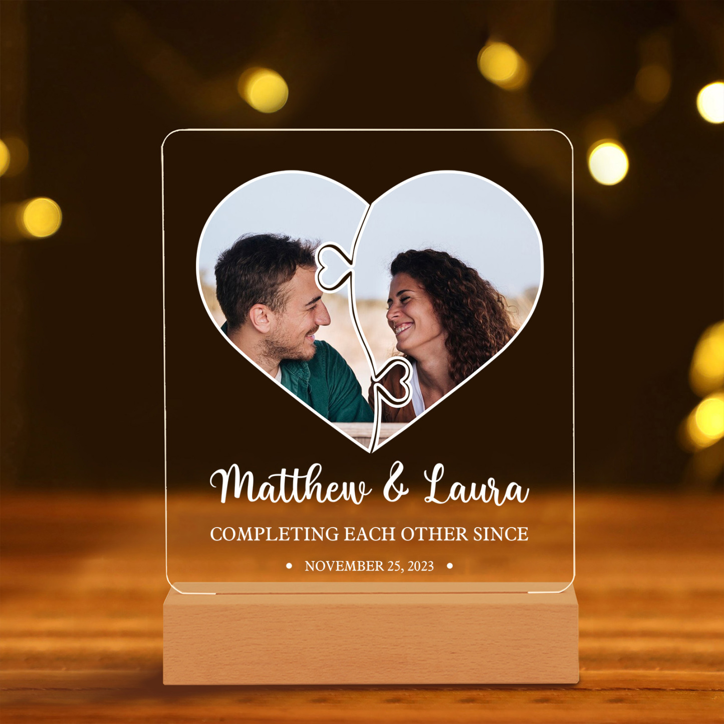 Photo-Personalized Couple Frame Custom Names LED Night Light Anniversary Gift For Couple