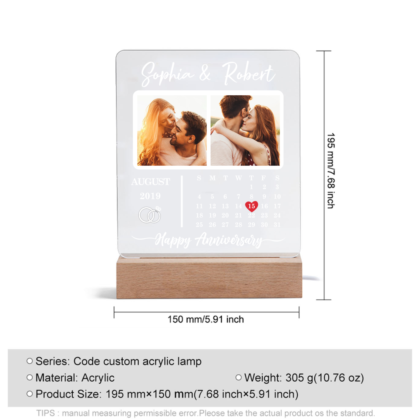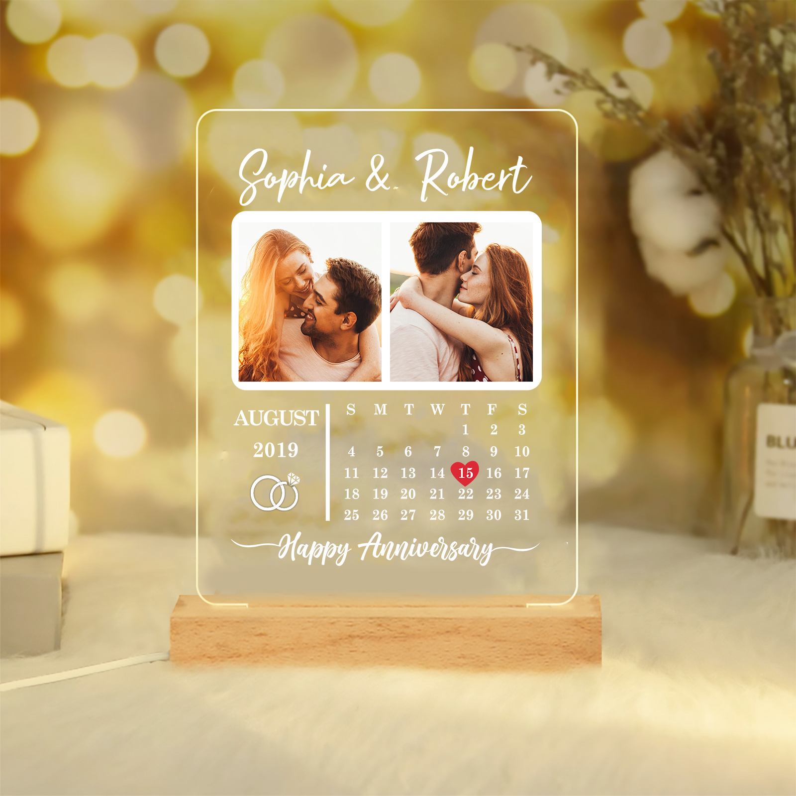 Photo-Personalized Couple Frame Custom Names LED Night Light Anniversary Gift For Couple