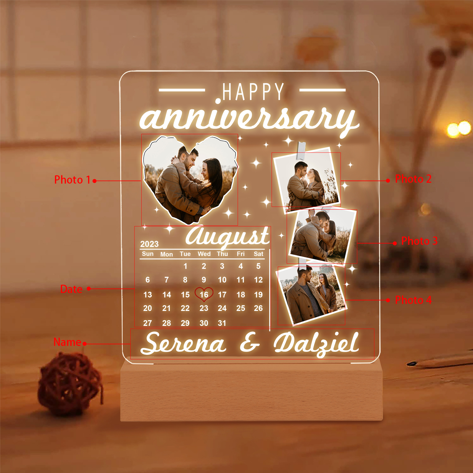 Photo-Personalized Couple Frame Custom Names LED Night Light Anniversary Gift For Couple