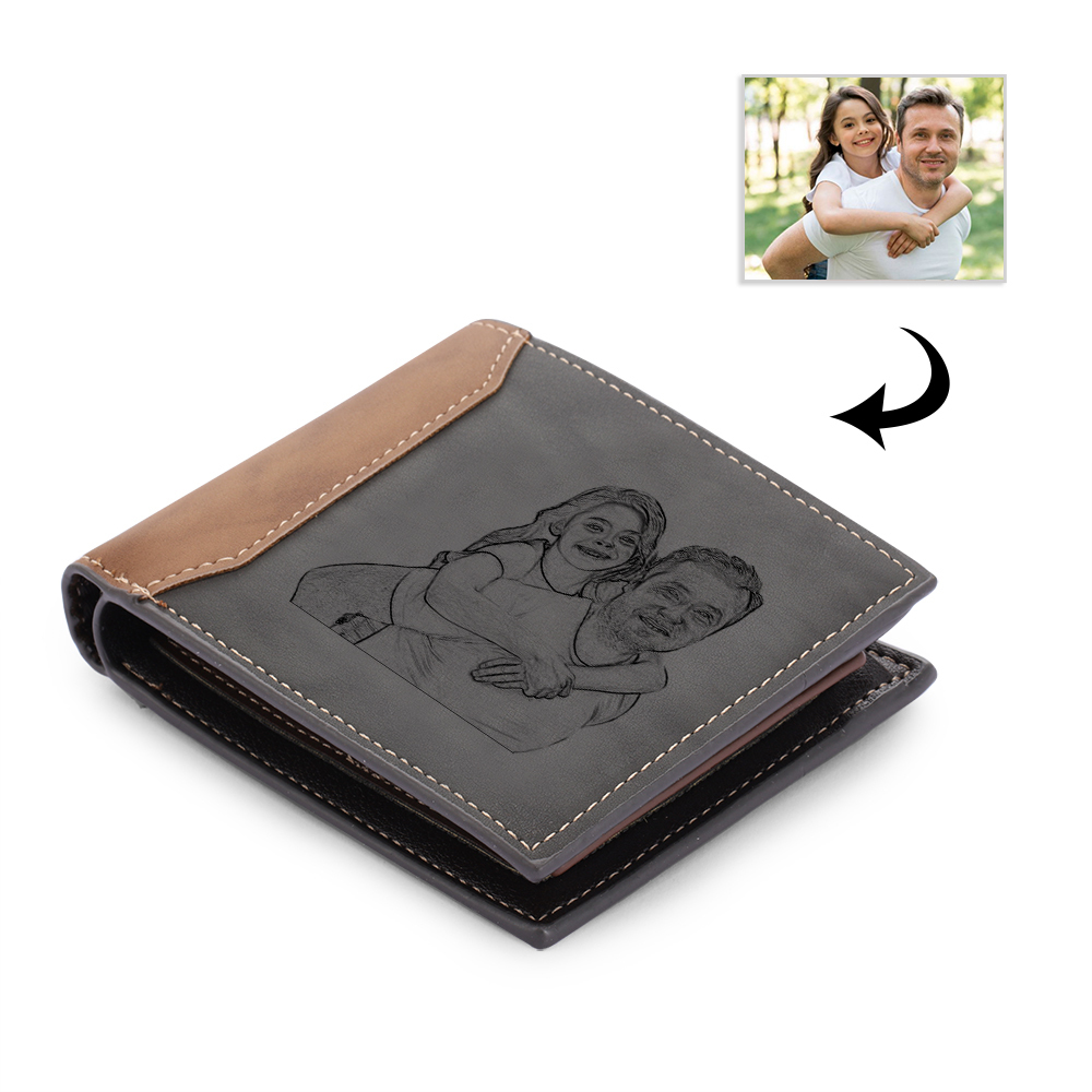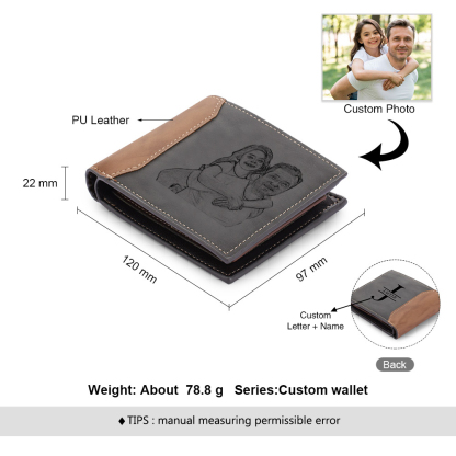 Photo Personalized Leather Men's Wallet Custom Text Letter Folding Wallet For Dad
