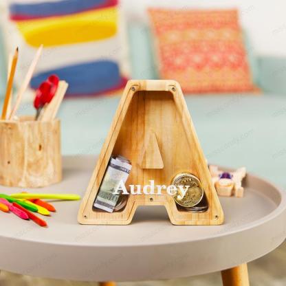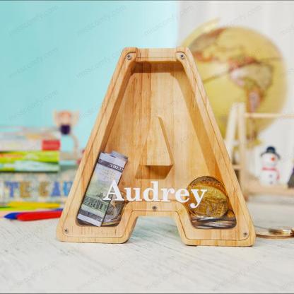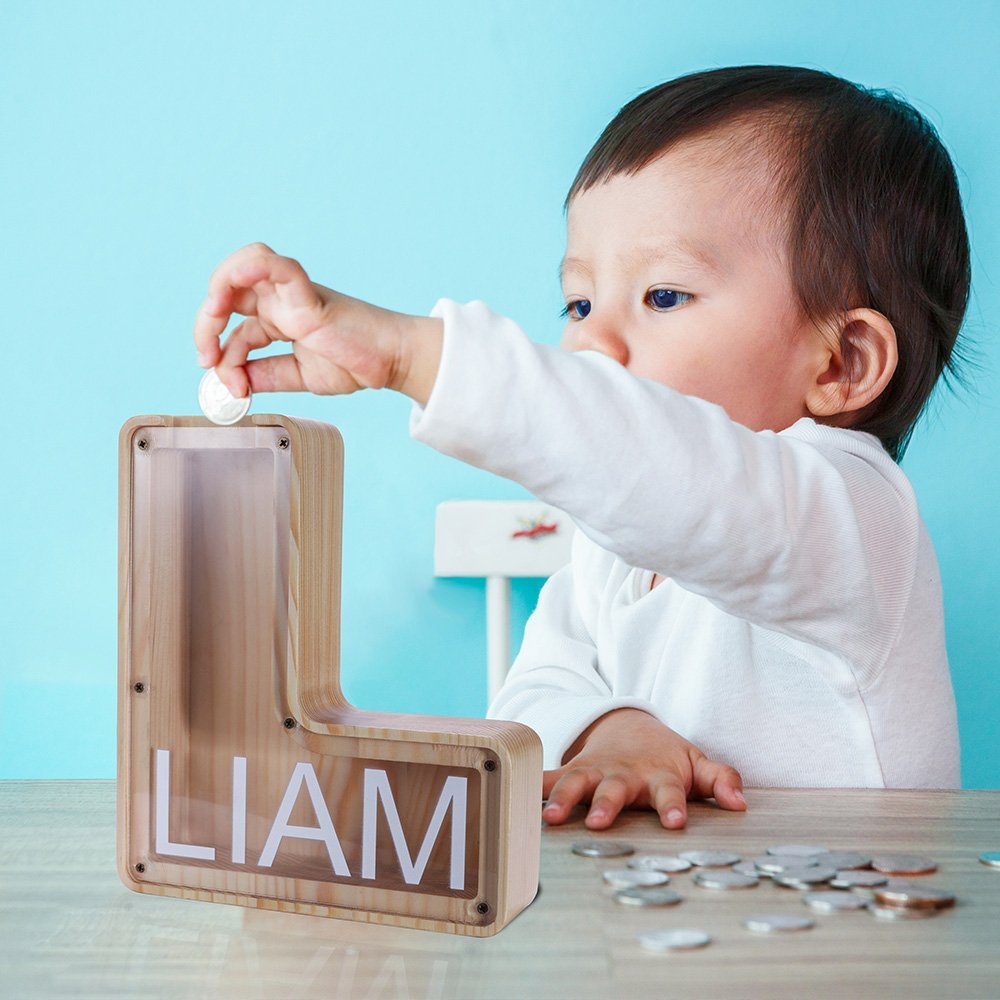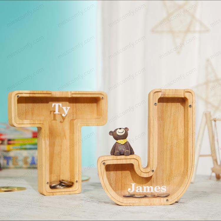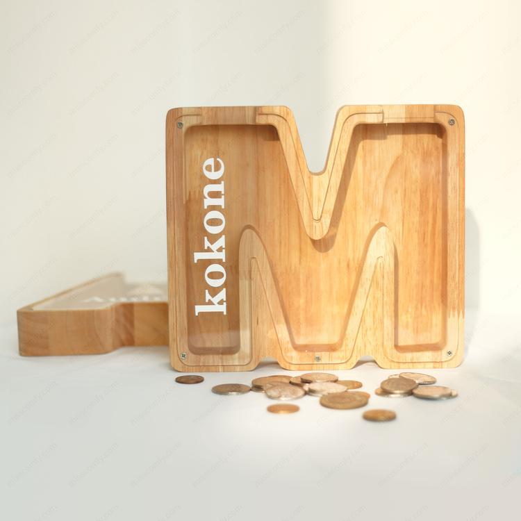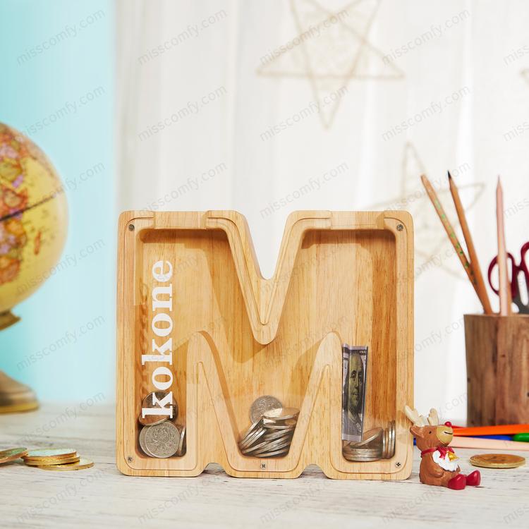 Piggy bank for kids Personalized coin bank organic Wooden home adventure nursery decor