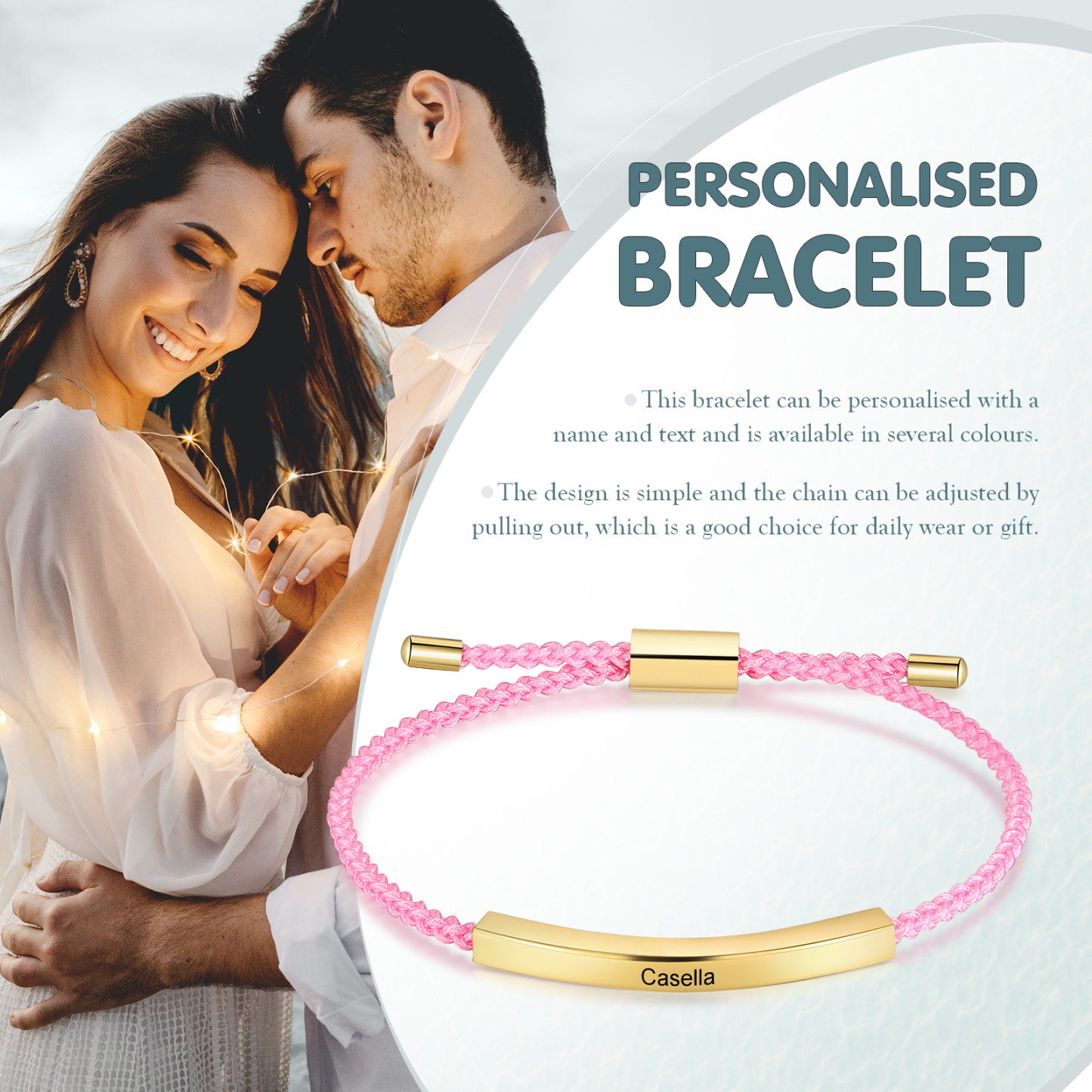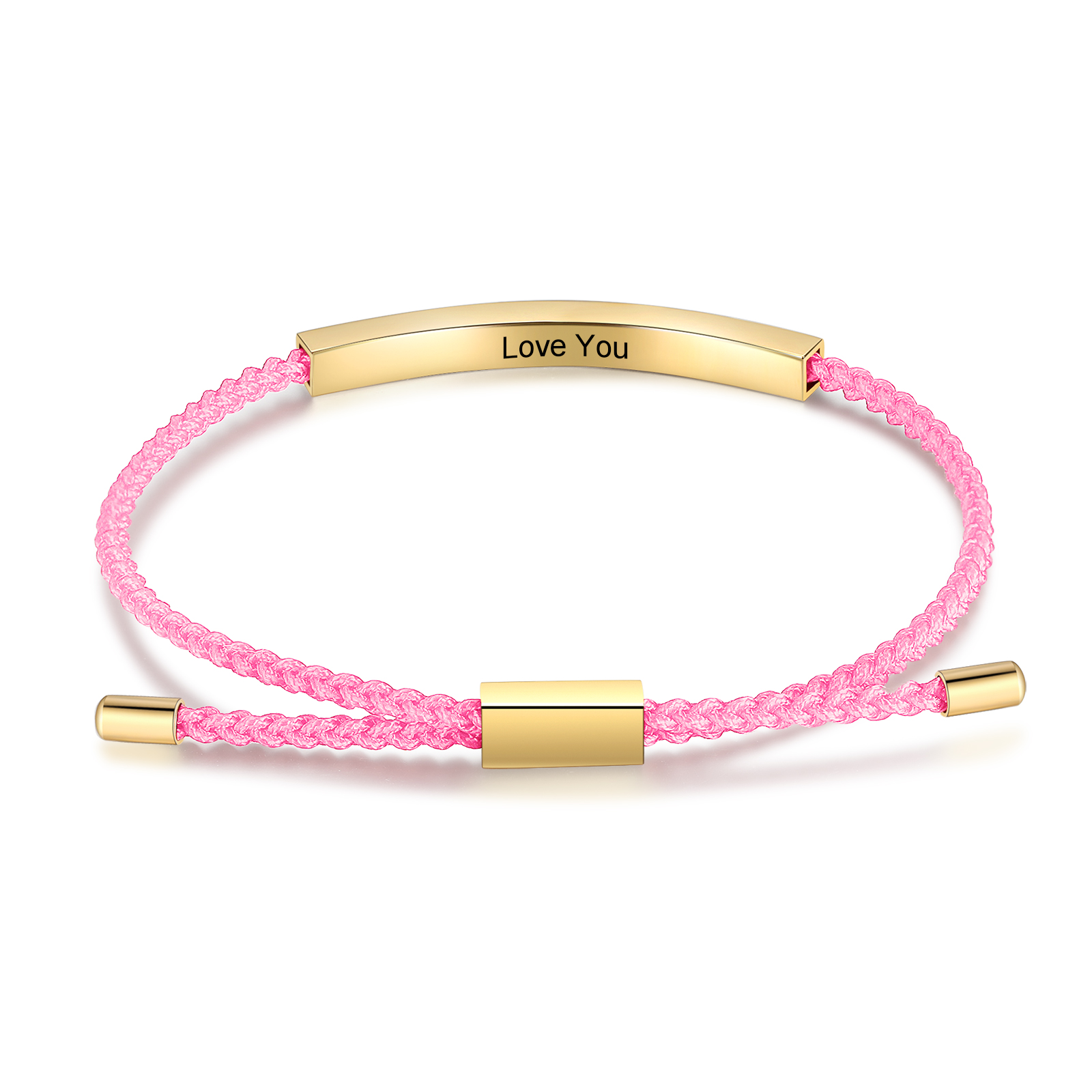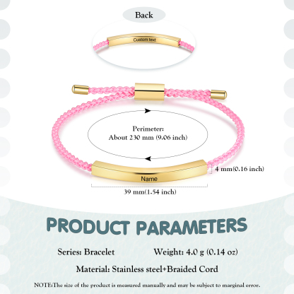Pink+Gold-Personalized Stainless Steel Adjustable Bracelet, Custom Name Braided Bracelet for Her/Him