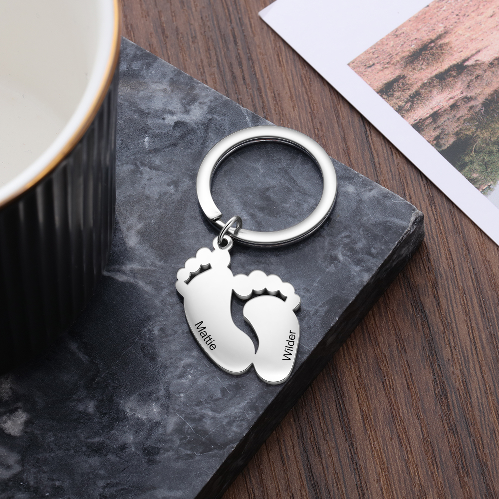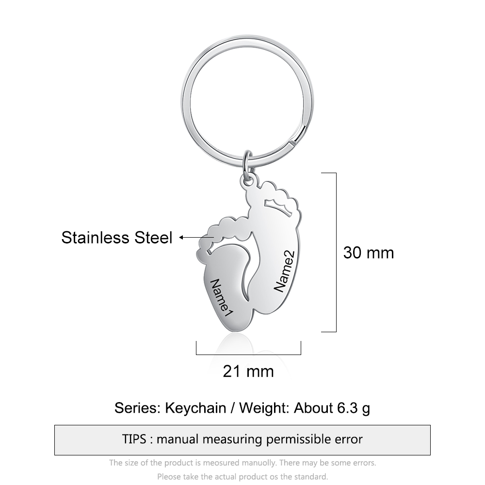 2 Names-Personalized Keychain Custom Baby Foot First Name