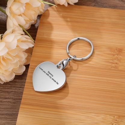 A photo captures a moment that is gone forever and with our engraved photo keychain you can wear the photo every day. Personalize your Photo key ring with an engraved photo of your most beautiful memory. You can engrave any words you want to express on the back of the pendant.