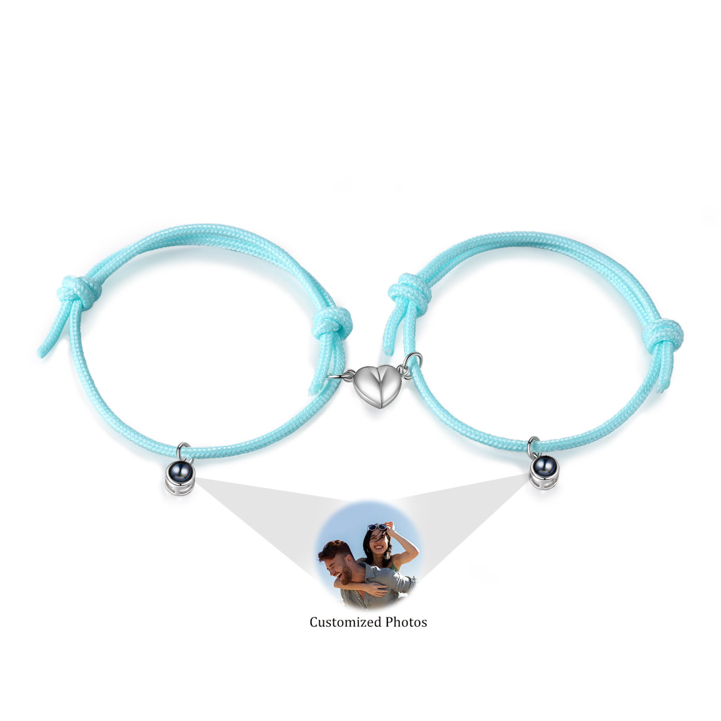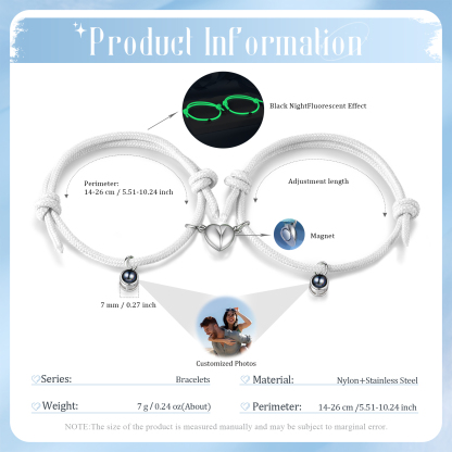 Projection Photo Luminous Bracelet Custom Photo Engraved Pendant Stainless Steel Bracelet Personalized Gift for Him/Her