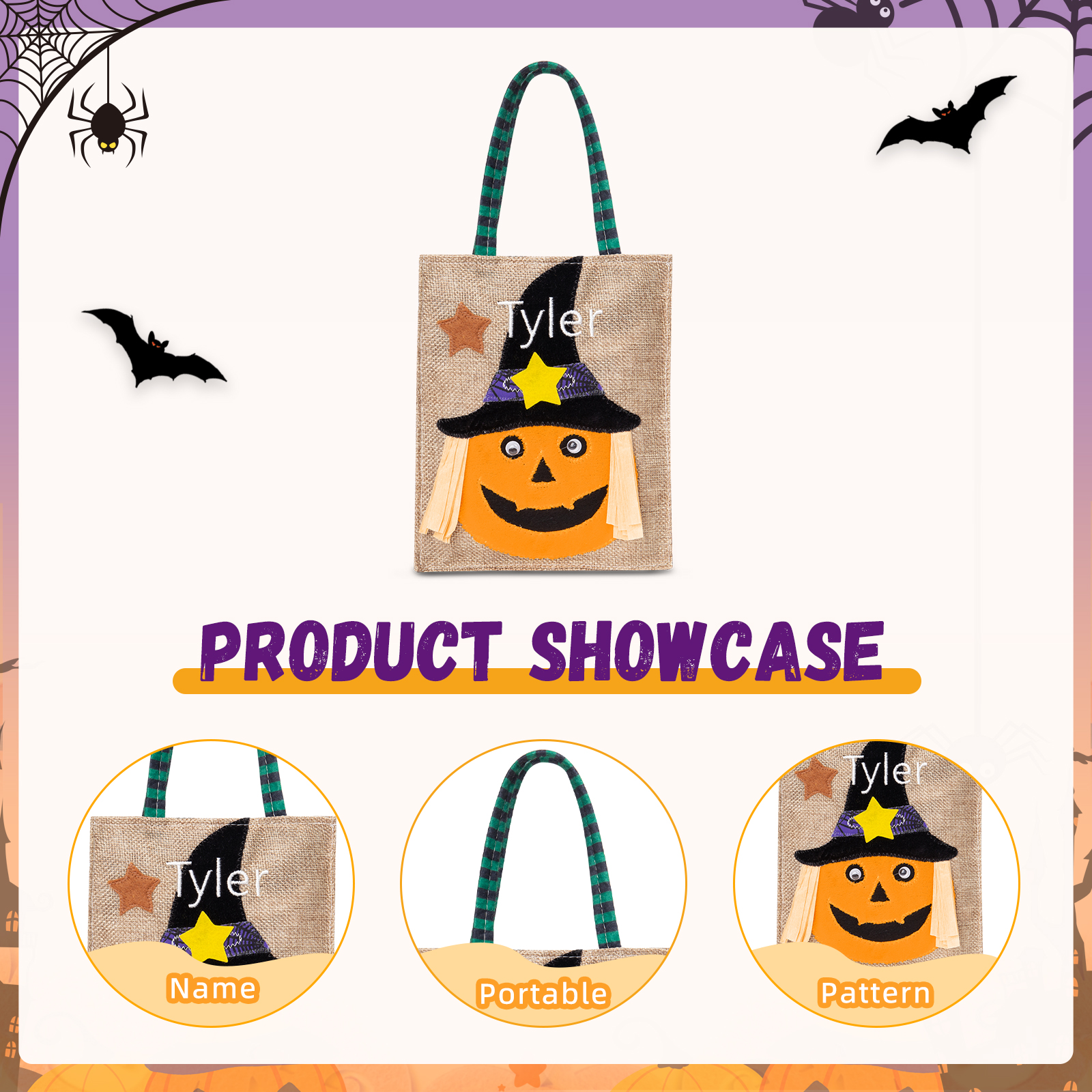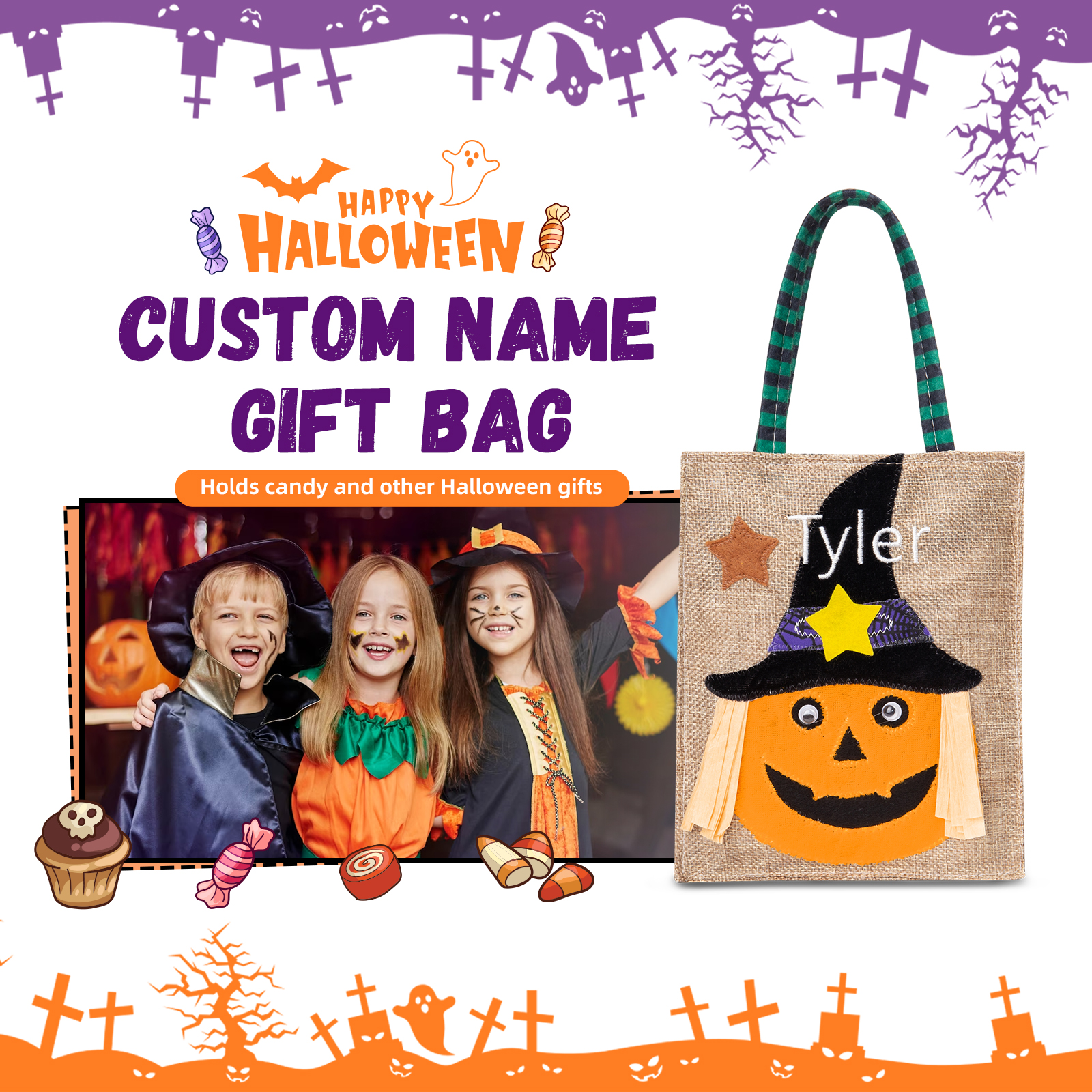 🎃Introducing our latest Halloween Candy Bag, now available with customizable names! This spooktacular candy bag is the perfect accessory for trick-or-treating and Halloween parties. Made from durable materials, it ensures your candies stay safe and secure throughout the night.