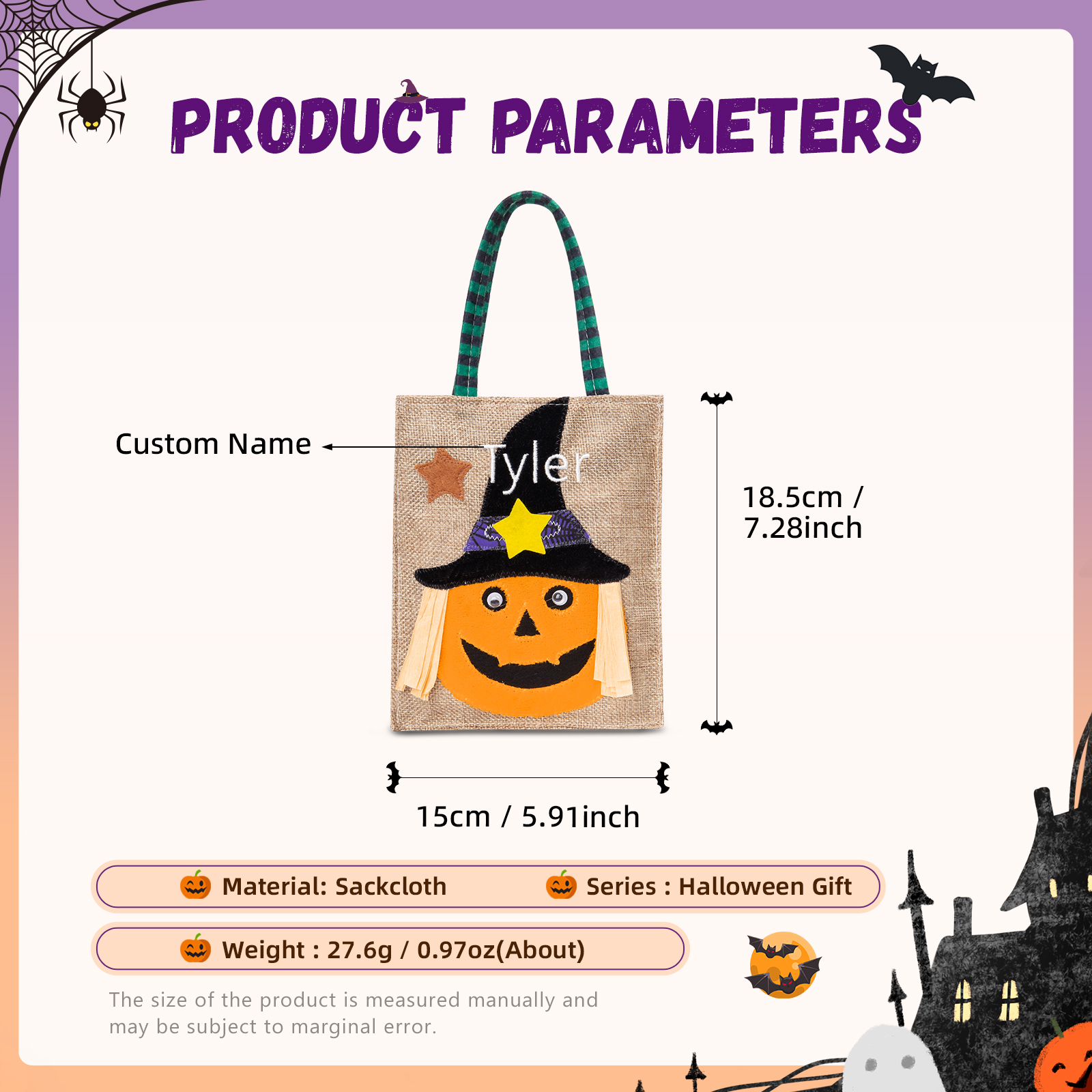 With our unique customization option, you can add your desired name to make this candy bag truly one-of-a-kind. Whether it's your own name, a spooky moniker, or a fun nickname, personalizing your candy bag adds an extra touch of Halloween magic.