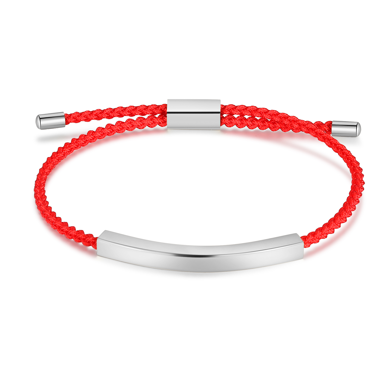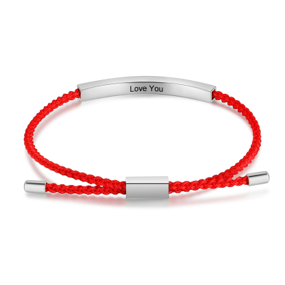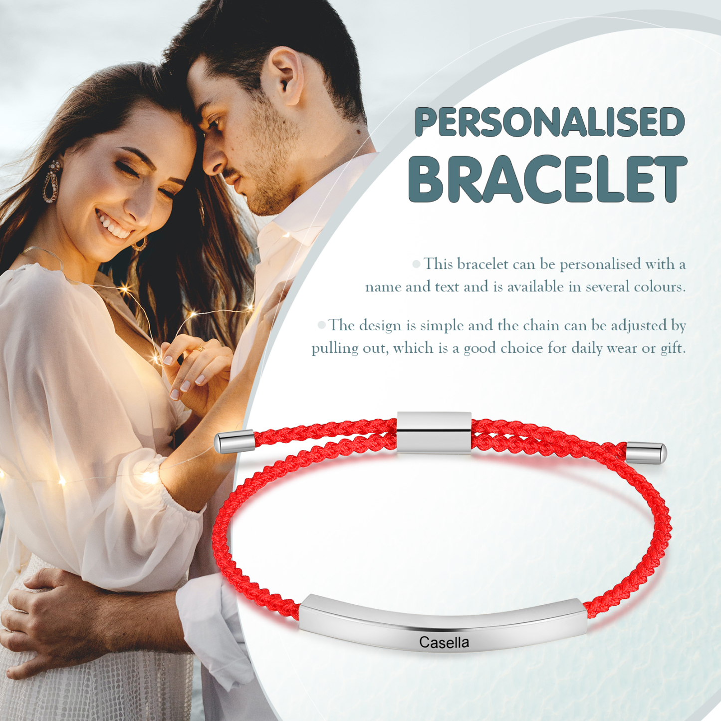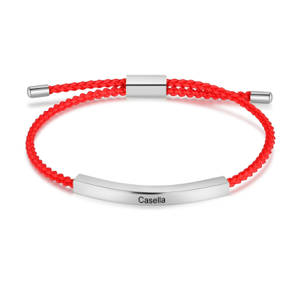 Red+Silver-Personalized Stainless Steel Adjustable Bracelet, Custom Name Braided Bracelet for Her/Him