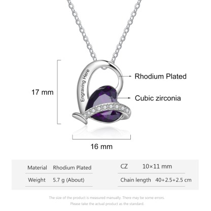 Personalized Heart Necklace with Birthstone Engraved Name Gifts for Her