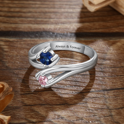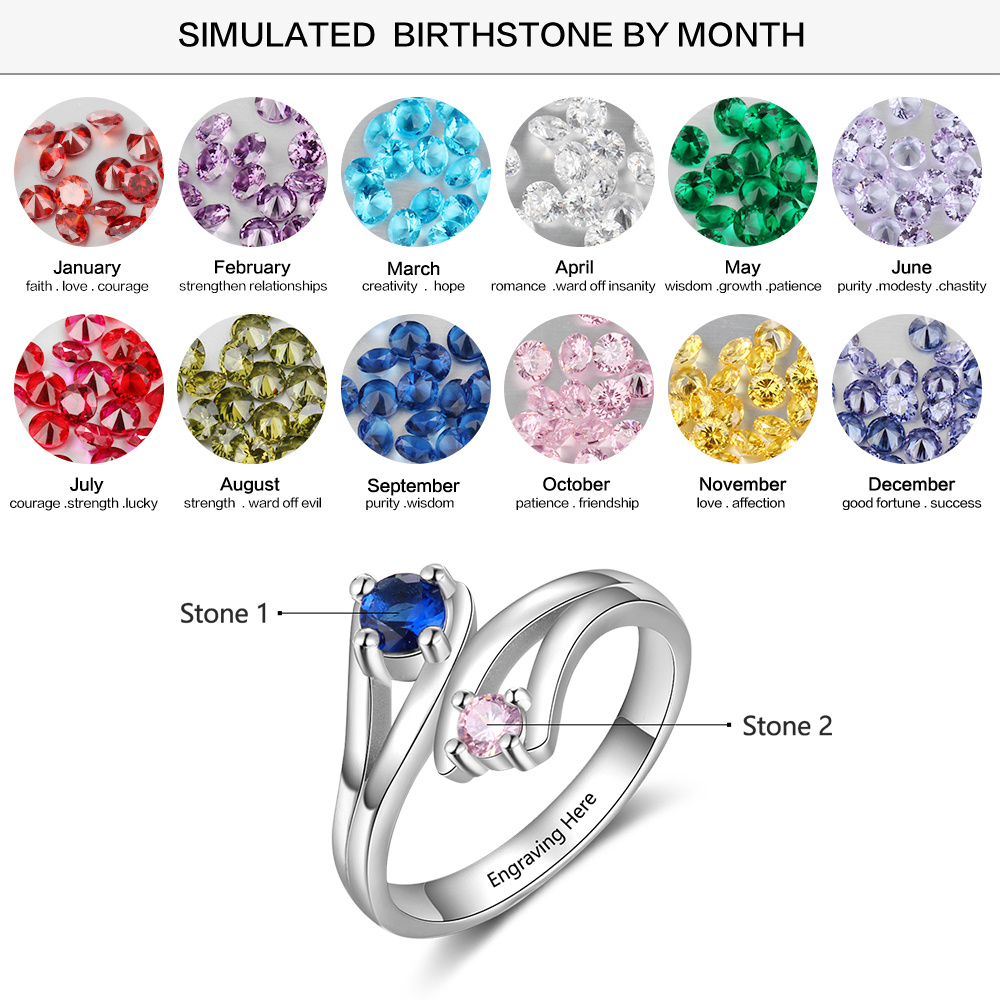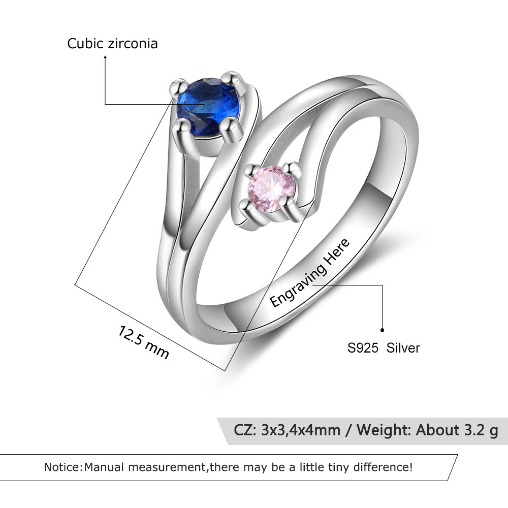 S925 Silver Ring Personalized 2 Birthstones Ring With Names Gifts For Her