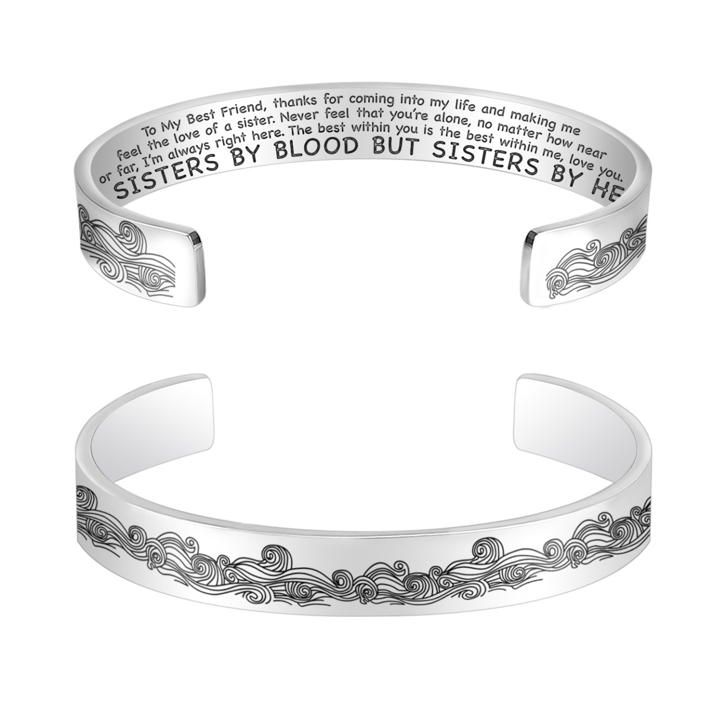 Sisters by blood but sisters by heart, Cuff Bangle Bracelet Gifts For Her
