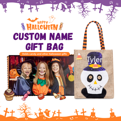 Skeleton-Personalized 1 Name Halloween Tote Bags Custom Kids Halloween Trick or Treat Candy Bags with Witch