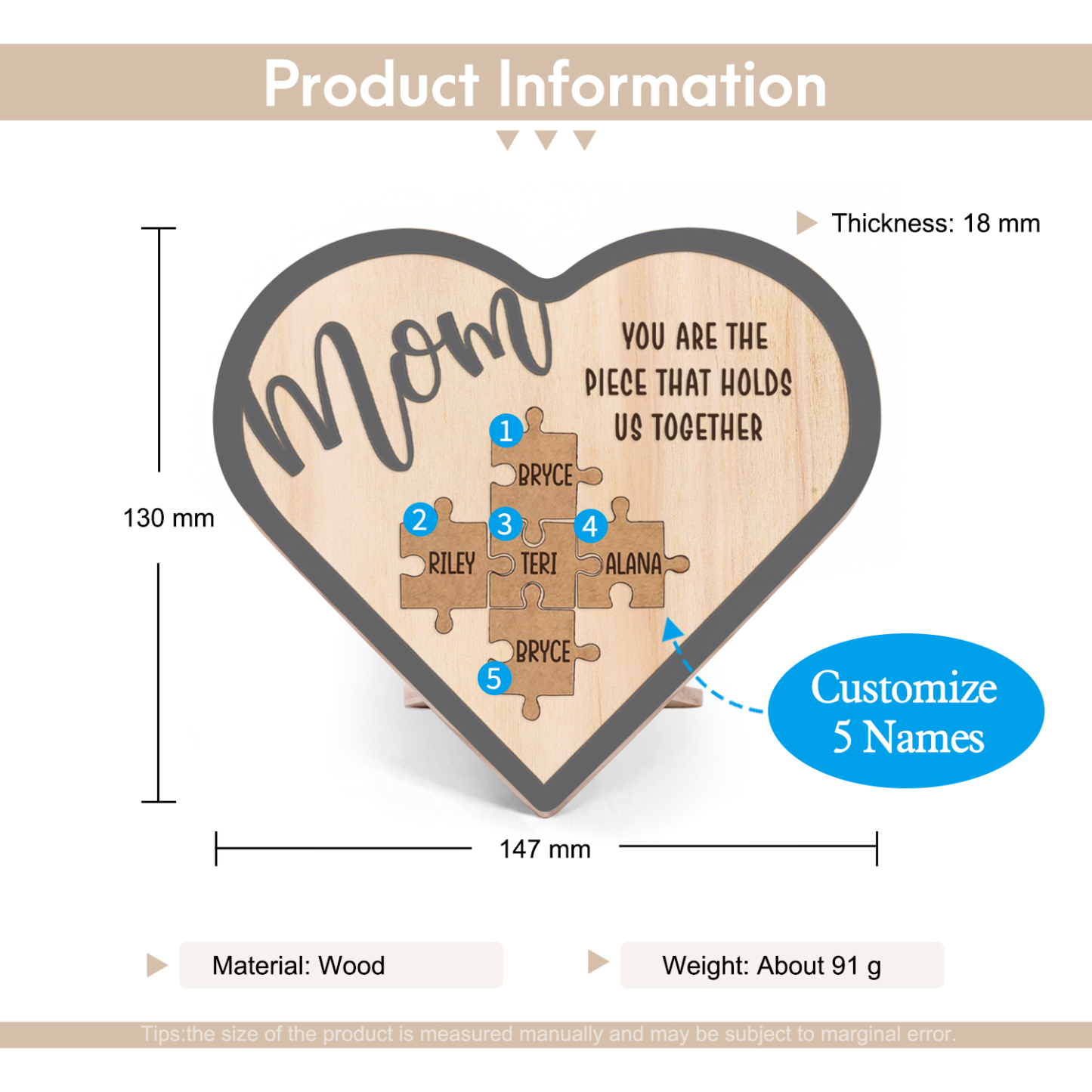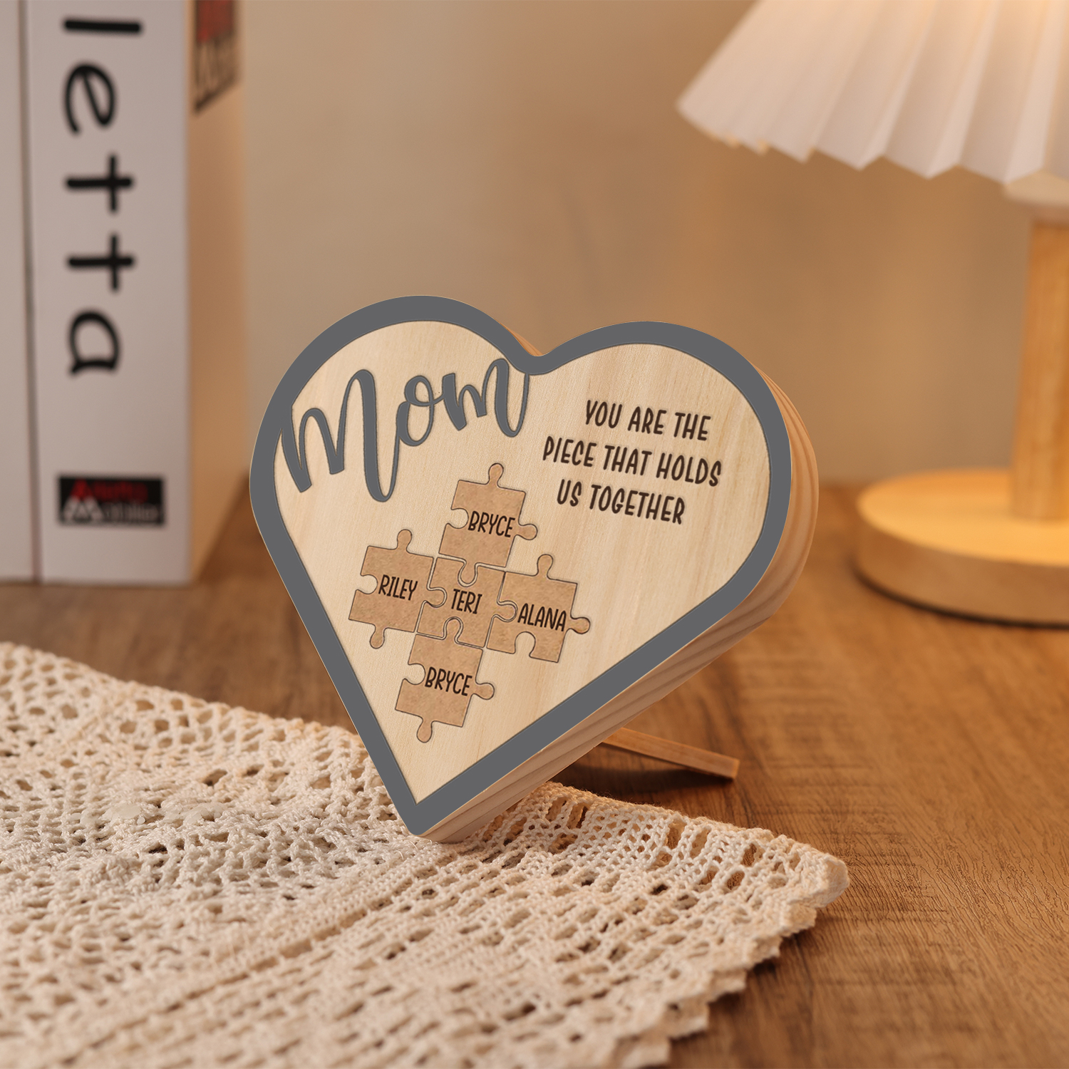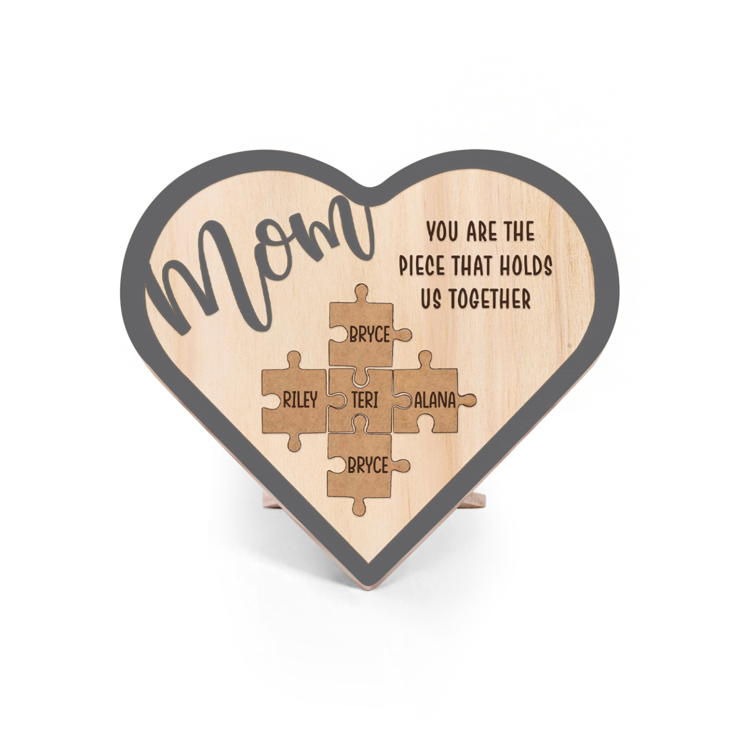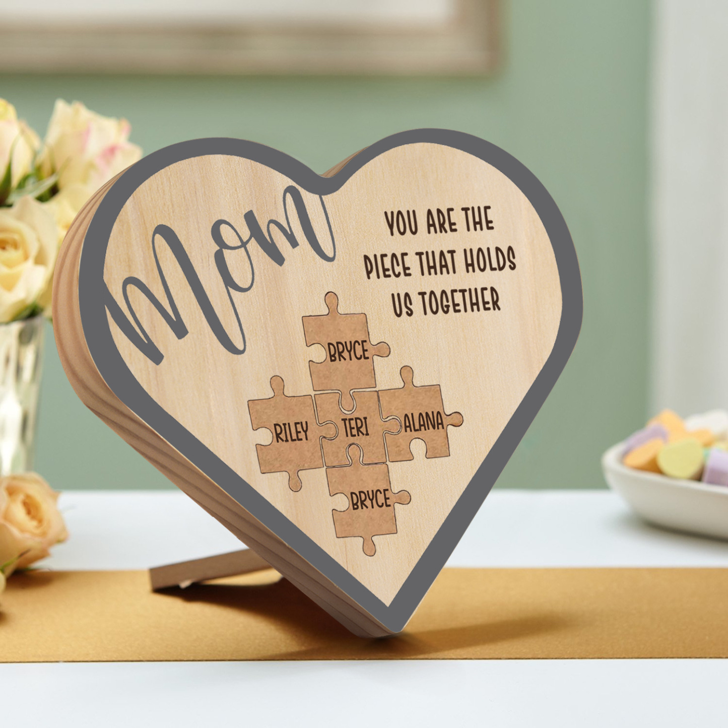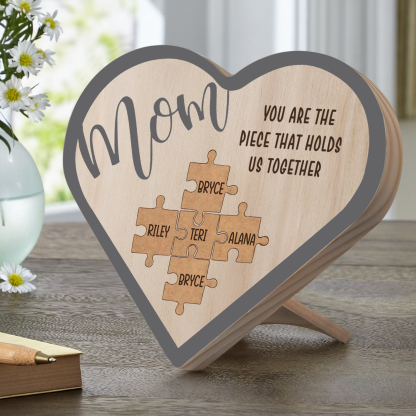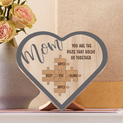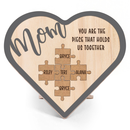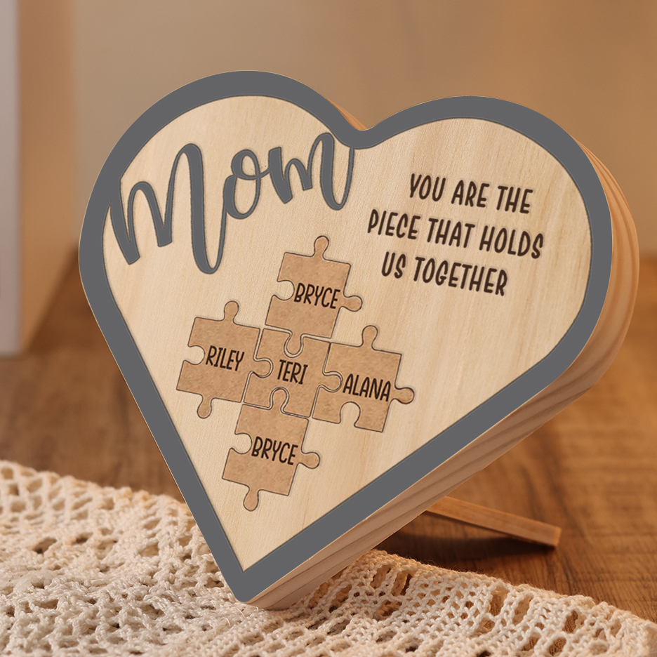 To Mom Personalized Wooden Puzzle Heart Keepsake Desktop Ornament Custom 5 Names Mothers Gifts
