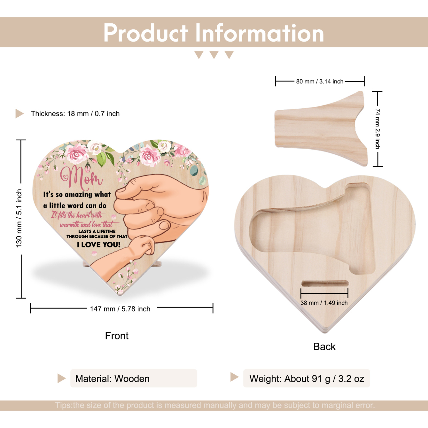 💕 Whether it's for a birthday, anniversary, or just because, this wooden heart is sure to bring warmth and joy to their heart. This wooden heart desktop ornament symbolizes the love and warmth that we share with our loved ones. It serves as a reminder of the cherished memories we've created together and the unbreakable bond we share.