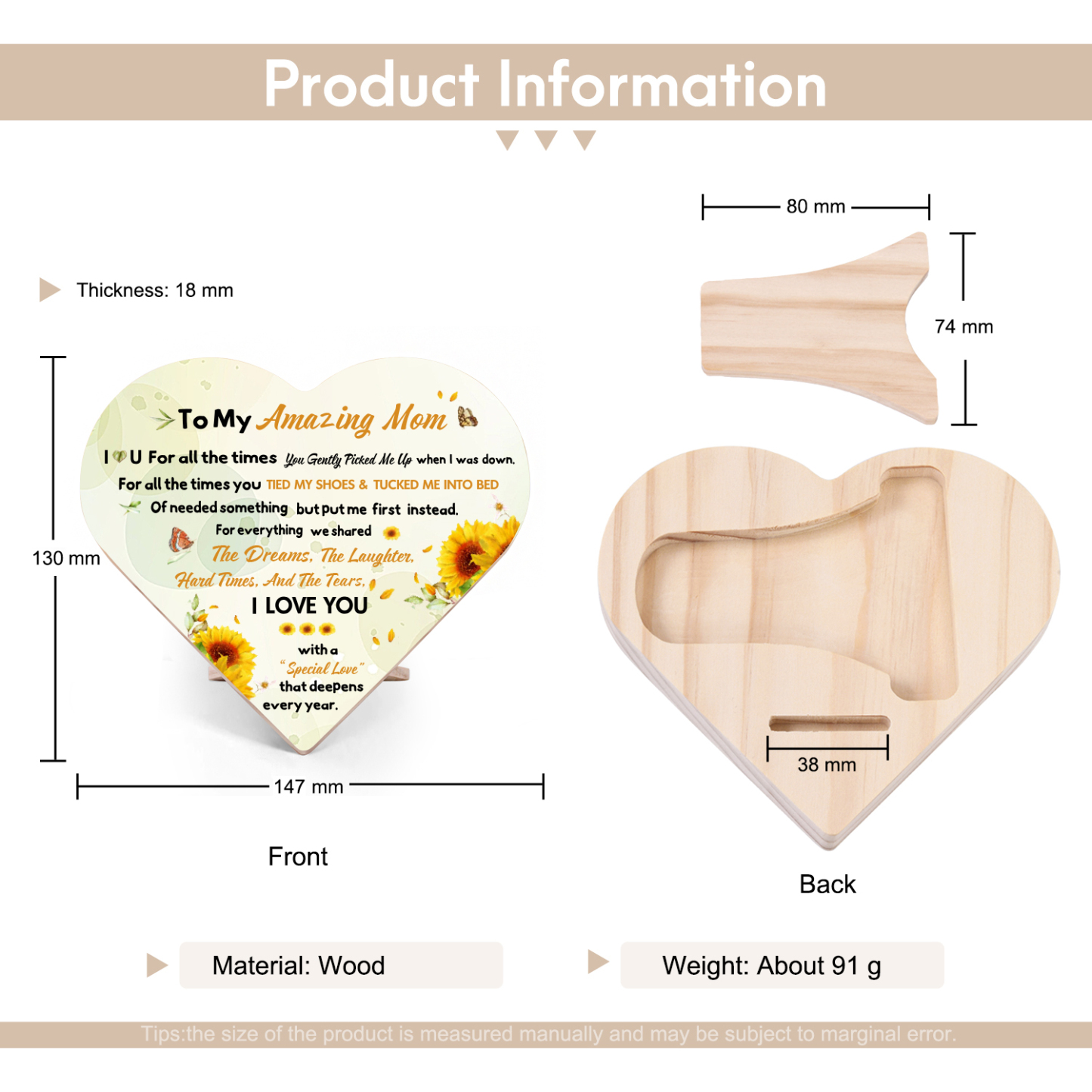 To My Amazing Mom I ❤️ U Wooden Flowers Heart Keepsake Desktop Ornament