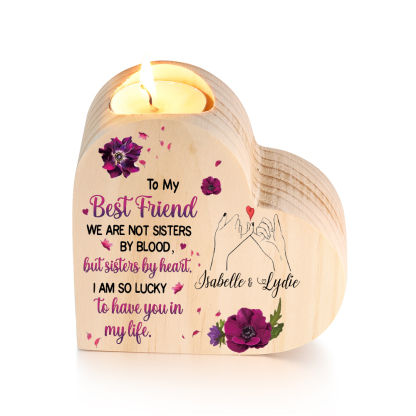 To My Best Friend Violet Flower Heart Candle Holder "I AM SO LUCKY Set With Gift BoxTO HAVE YOU IN MY LIFE" Wooden Candlestick