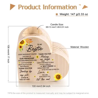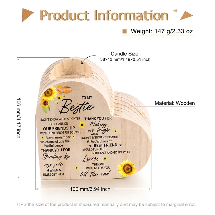 To My Bestie Heart Candle Holder Thank you for making me laugh Wooden Candlestick