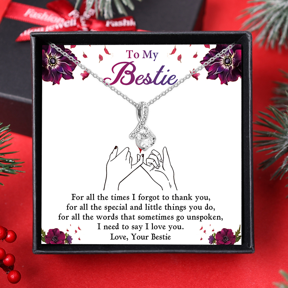To My Bestie Necklace Set-S925 Sterling Silver Necklace with Violet Flower Gift Card Gift Box Set-Best Gift For Friend