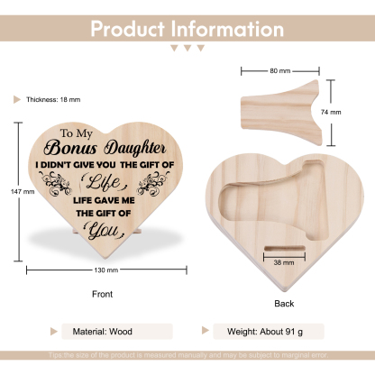 To My Bonus Daughter Life Gave Me The Gift Of You Wooden Heart Keepsake Desktop Ornament