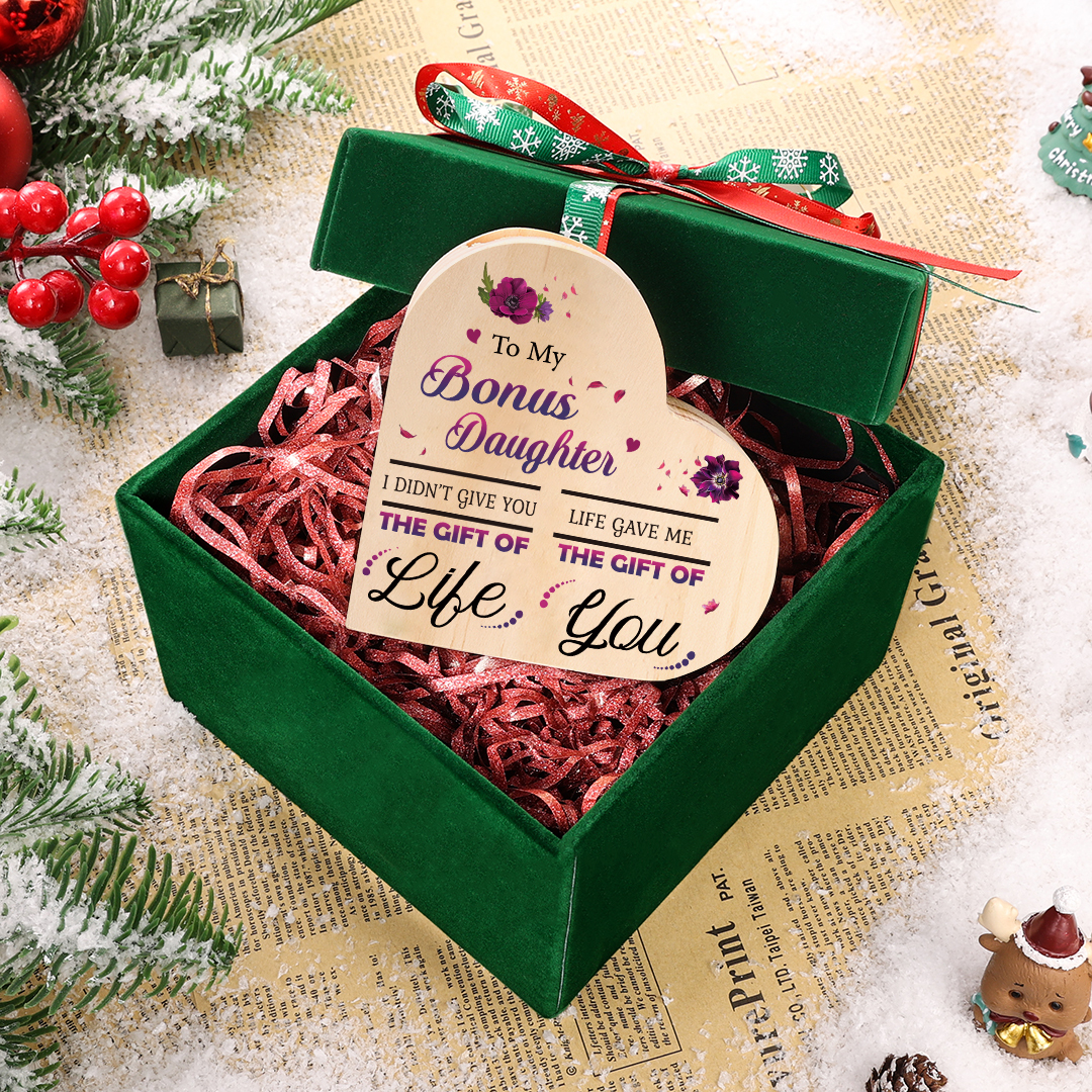 To My Bonus Daughter Violet Flower Heart Candle Holder "Life Gave Me The Gift of You" Wooden Candlestick