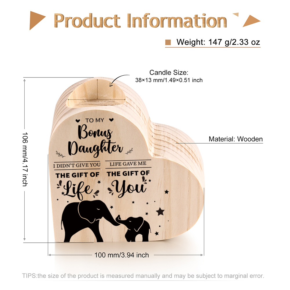 To My Bonus Daughter Wooden Heart Candle Holder "Life Gave Me The Gift of You"
